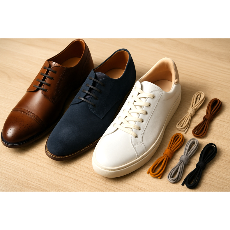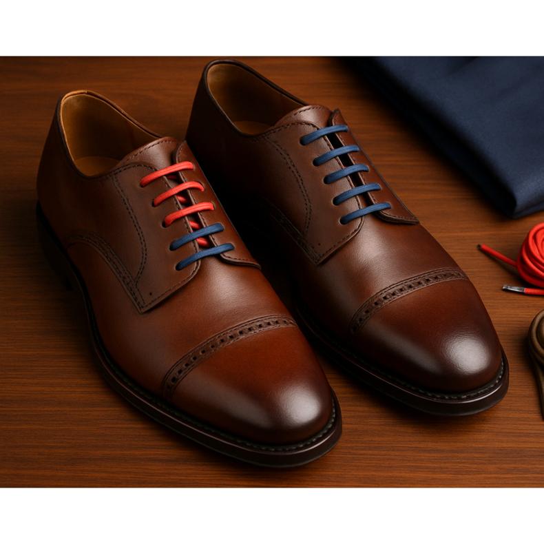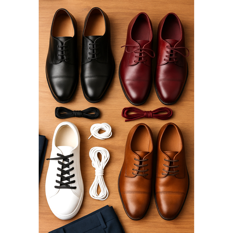 - Pantofi maro → șireturi maro (se potrivește cu nuanța - maro deschis pentru pantofi deschisi, maro închis pentru pantofi închisi)