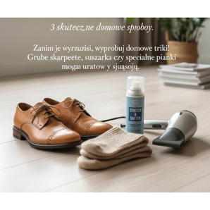Cea mai veche și simplă metodă sunt șosetele groase și umede. Udați-le ușor (nu pot să picure!), puneți-le în picioare și apoi strângeți-le în pantofi strânși. Poartă-le prin casă atâta timp cât poți suporta sau până când șosetele ți se usucă. Umiditatea înmoaie pielea, iar piciorul în materialul gros o întinde.