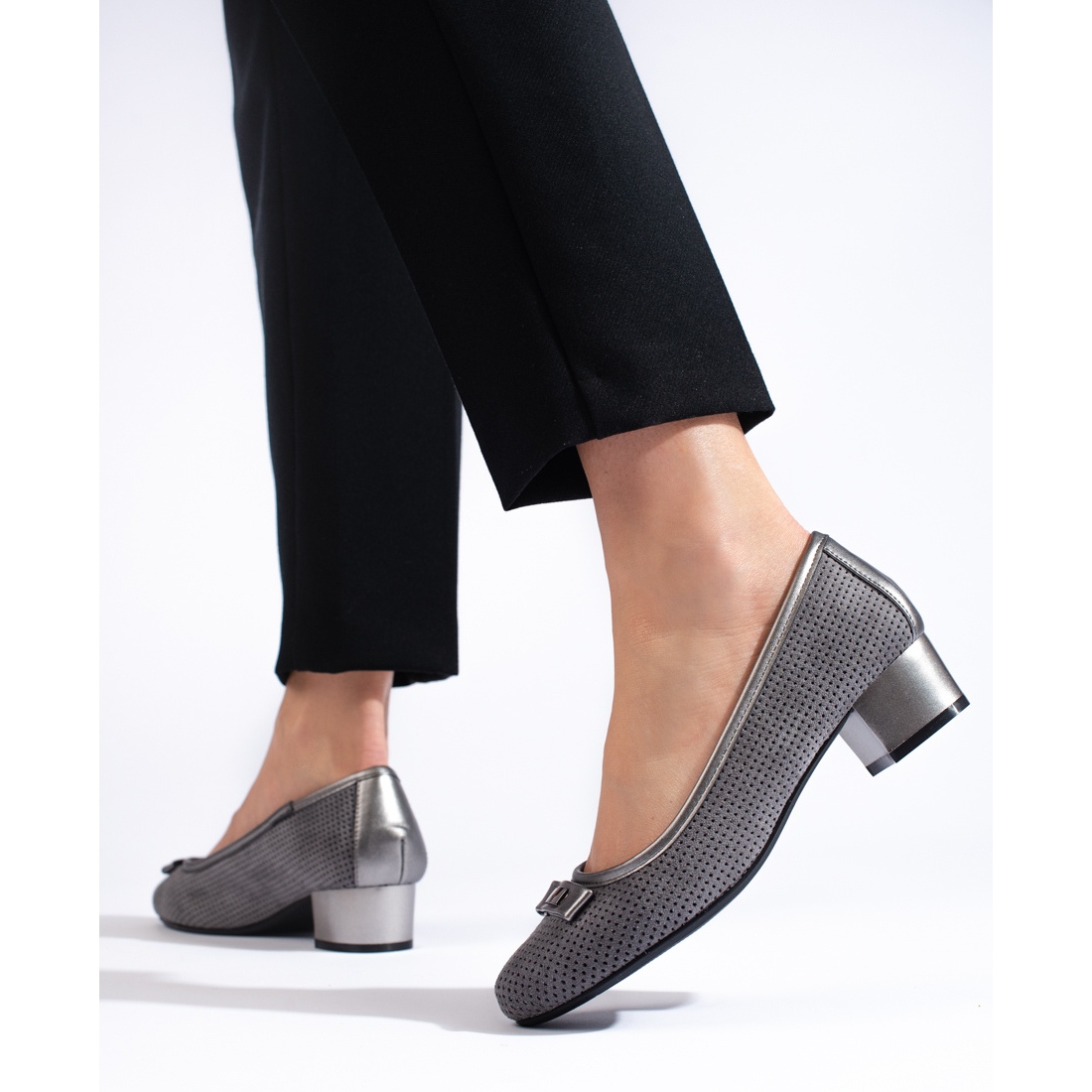 Detalii: Daszyński pantofi cu toc joasă ajurat gri