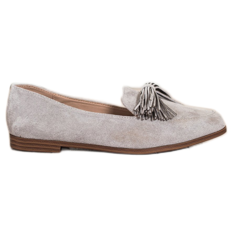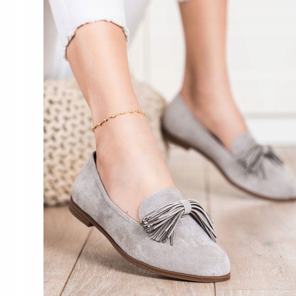 Franjurii sunt un detaliu important care adauga originalitate acestor pantofi, iar varful rotund promoveaza confortul fara a restrânge degetele. Culoarea lor gri universală le face ușor de combinat cu alte articole vestimentare, iar tocul plat (înălțime de 1,5 cm) le face potrivite atât pentru purtarea de zi cu zi, cât și pentru ocazii mai formale.