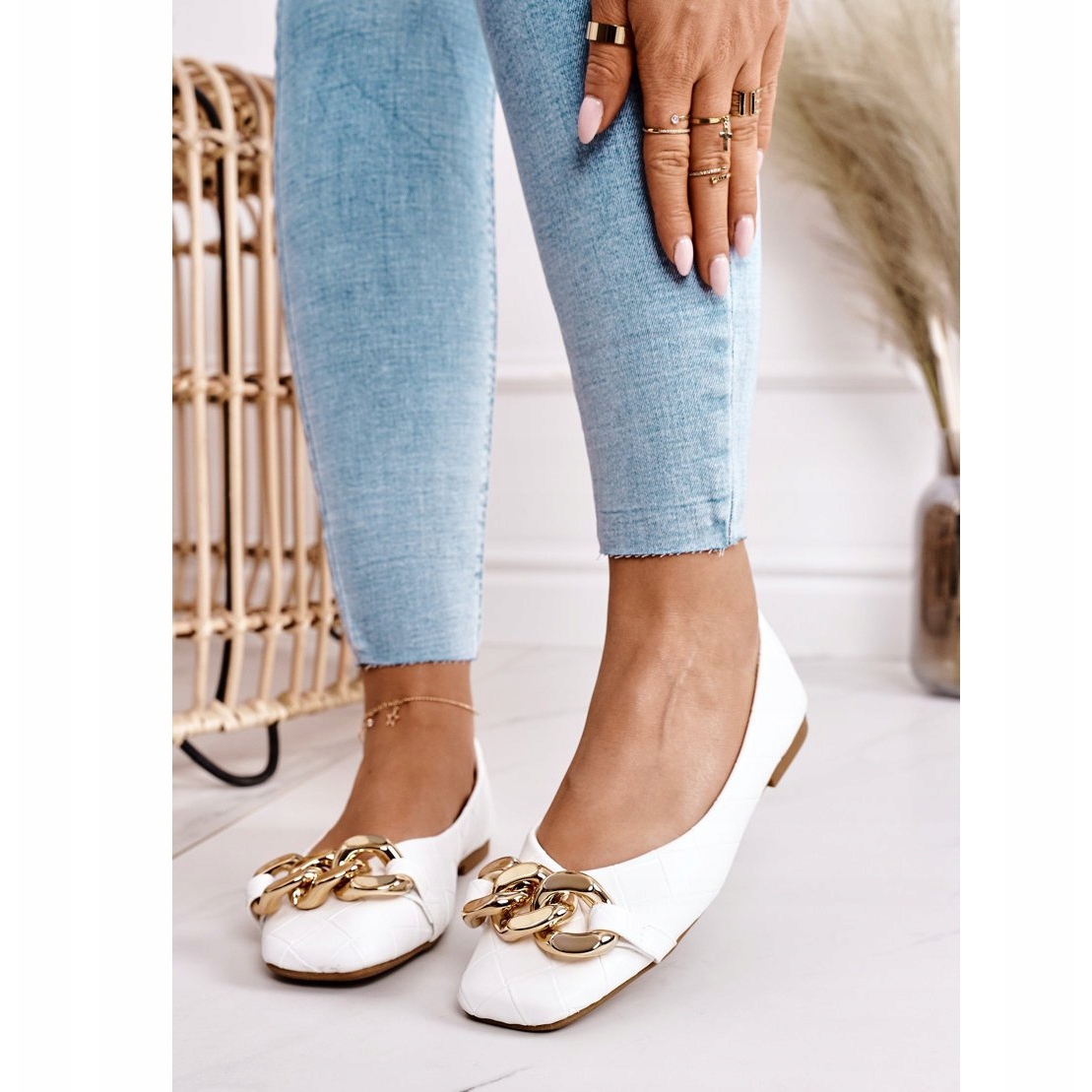 Detalii: PS1 Elegante balerini matlasate cu lanț alb Coco