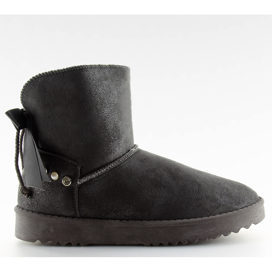 Pantofi Emus cu perle DD60 gri - cizme de zapada din piele intoarsa cu sic feminin