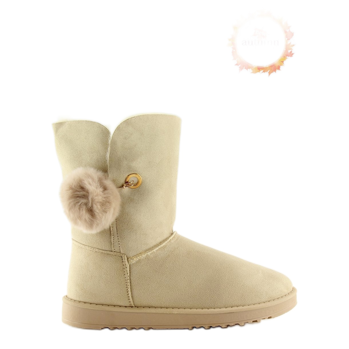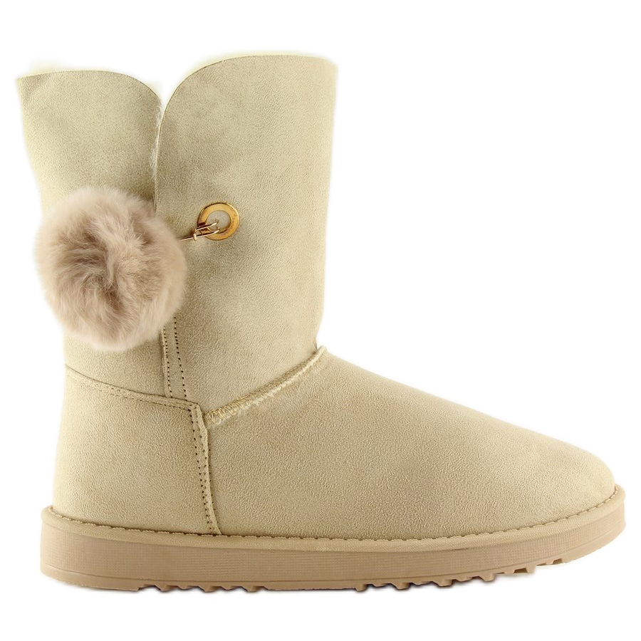 Pregătește-te pentru zilele reci cu stil, cu emuul nostru bej cu pompon (SP04P). Aceste cizme de zăpadă impresionante pentru femei combină confortul, căldura și designul la modă. Partea superioară înaltă protejează împotriva frigului, iar un pompon exclusiv din blană cu un ac de siguranță auriu adaugă un accent unic.