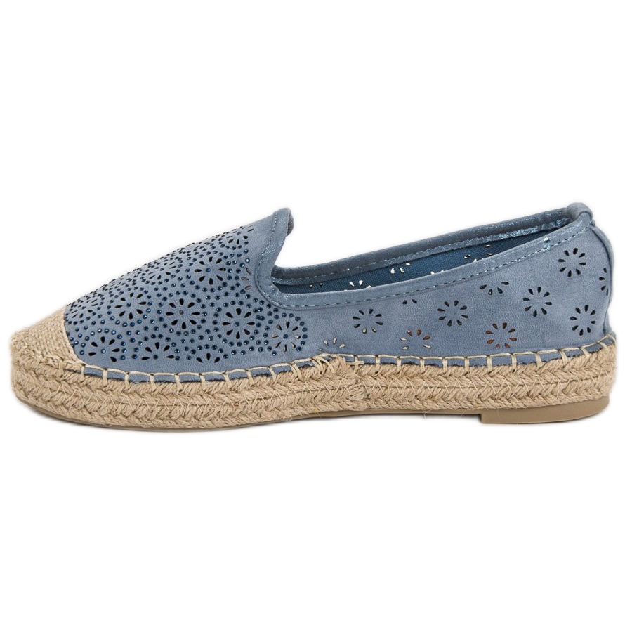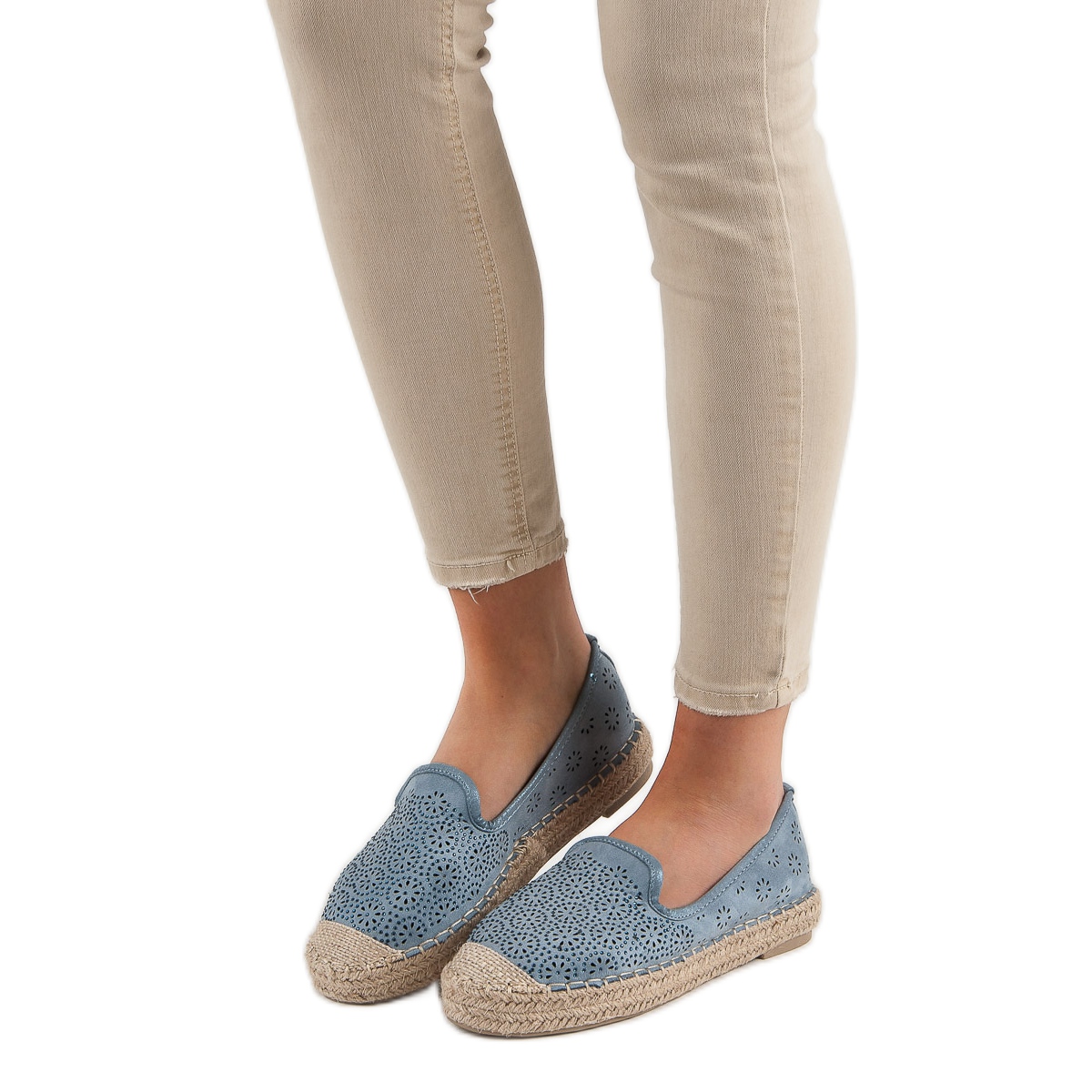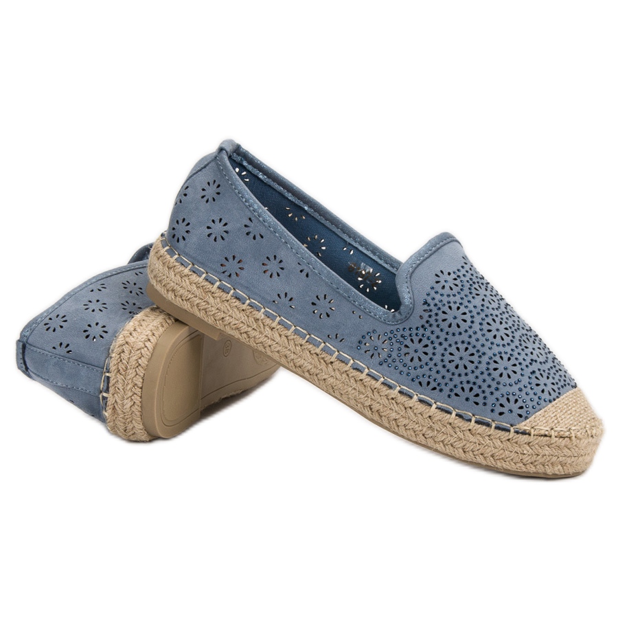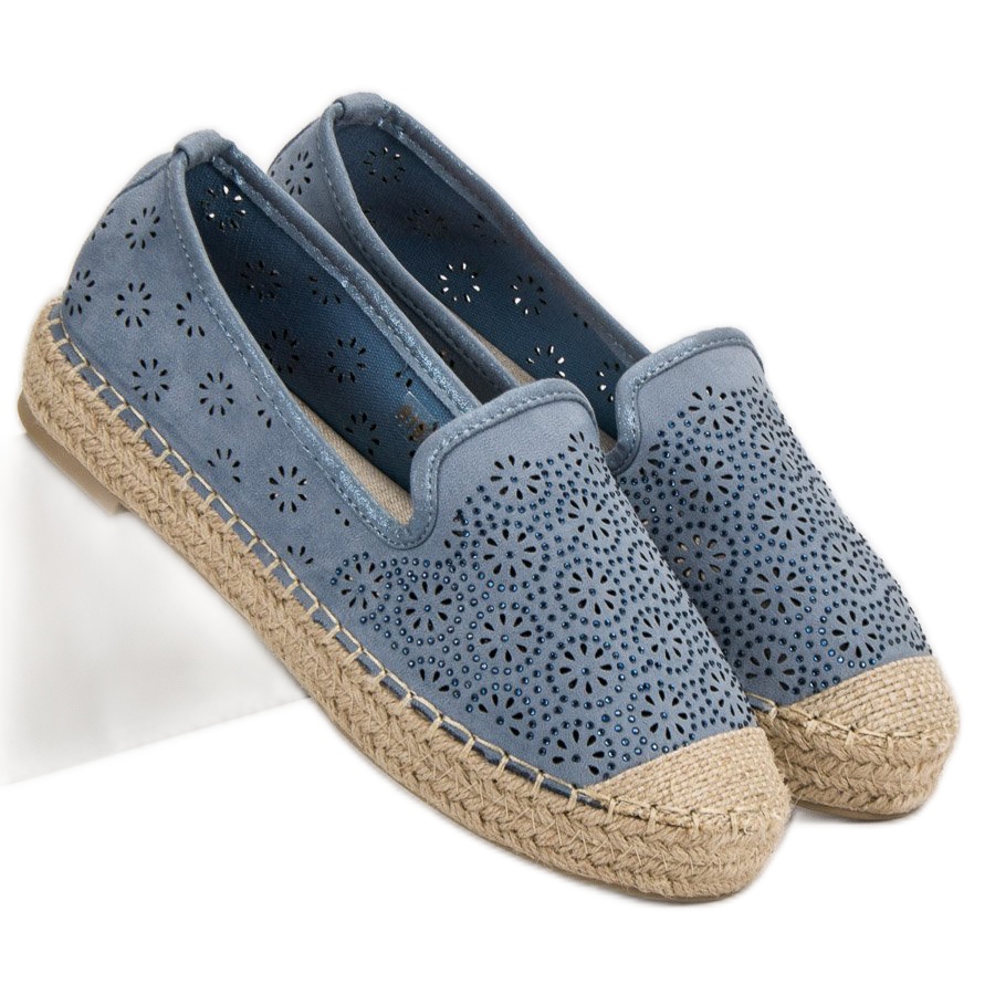 Detalii: Espadrile ajurate din piele de căprioară albastru