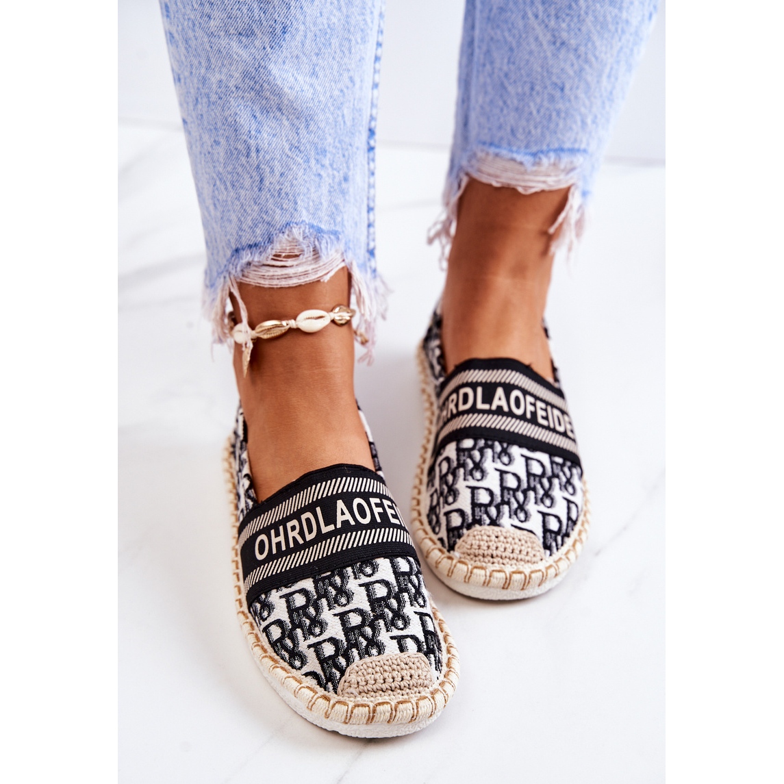 Espadrile clasice de damă pe talpă plată. Pantofi care se vor potrivi cu multe dintre stilurile tale. Brantul este din piele ecologica si material. Un model interesant pe care ar trebui sa il ai in garderoba ta! Asigurați-vă că consultați și cealaltă colecție a noastră de espadrile de damă. Atunci când alegeți o dimensiune, vă rugăm să utilizați diagrama de mărimi.