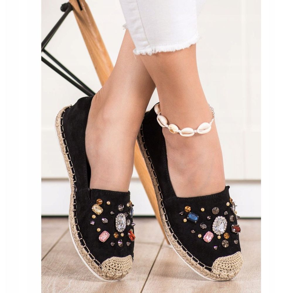 Espadrilele Gogo cu cristale negre sunt o alegere ideală pentru femeile care doresc să îmbine confortul cu un look la modă. Acesti pantofi eleganti, confectionati din piele intoarsa ecologica, atrag atentia prin accente subtile, precum strasuri si crampoane, care le confera un caracter unic.
