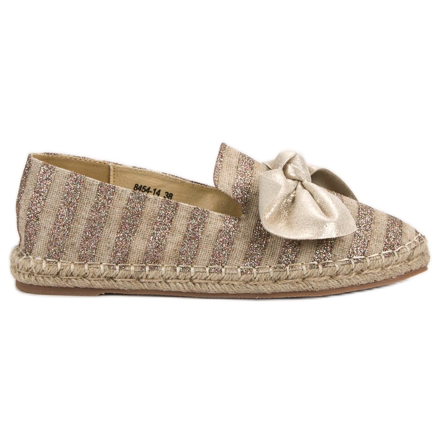 Designul lor original atrage privirea - sclipici senzual și o fundă decorativă adaugă farmec feminin, făcând ca fiecare stil să capete un caracter unic. Espadrilele au un vârf rotund și un toc moale, încorporat, ceea ce le face confortabil de purtat toată ziua.
