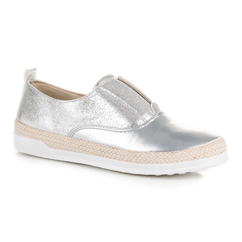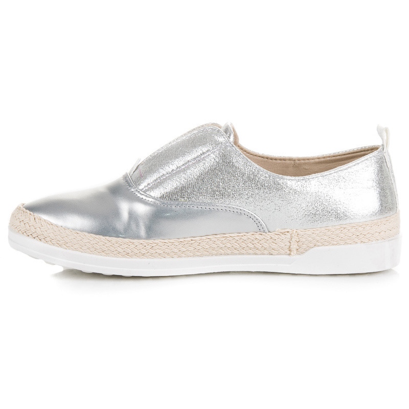 Adidași argintii Espadrilele gri sunt încălțăminte de damă extrem de stilată, care cu siguranță vor atrage atenția. Realizate din material de înaltă calitate asemănător pielii, aceste espadrile la modă oferă o strălucire metalică unică, făcându-le perfecte pentru modă și stilul casual de zi cu zi.