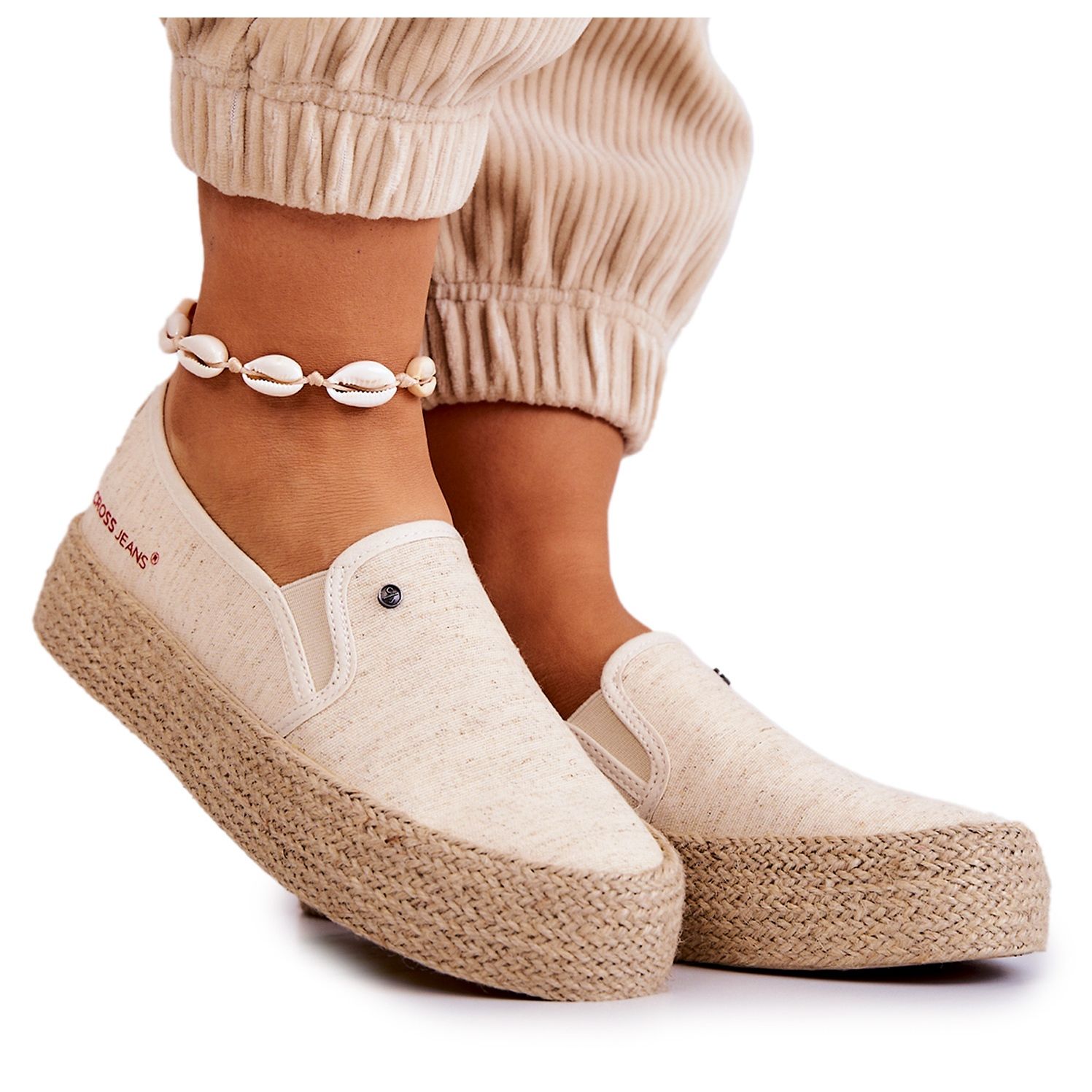 Detalii: Cross Jeans Espadrile de damă, pe platformă, blugi încrucișați JJ2R4014C bej