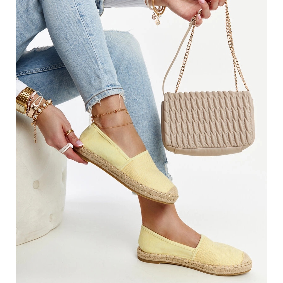 Conceput pentru femeile care apreciază combinația dintre modă și confort, aceste espadrile de la Inna surprind prin unicitatea lor. Culoarea galbenă lejeră nu numai că aduce în minte zilele însorite, dar se potrivește perfect în tendințele verii. Strălucirea care conferă pantofilor un caracter unic face ca fiecare ținută să fie unică.