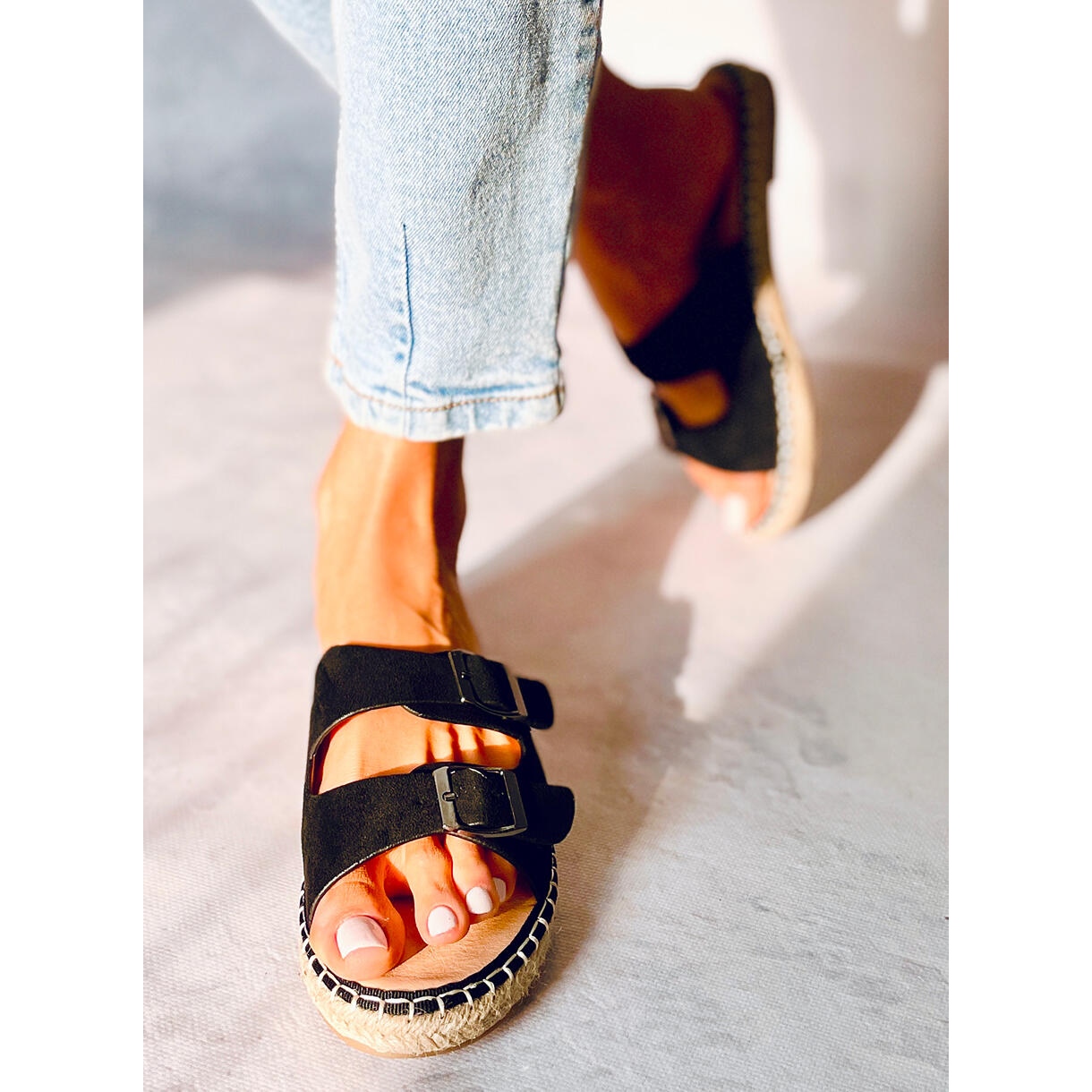 Flip-flops espadrile Maina intr-o culoare eleganta neagra sunt alegerea perfecta pentru zilele de vara! Aceste șlapi de damă ușoare și confortabile cu talpă plată combină designul la modă cu funcționalitatea. Datorită cataramelor reglabile, poți fi sigur că pantofii se vor potrivi perfect piciorului tău, ceea ce mărește confortul de utilizare.