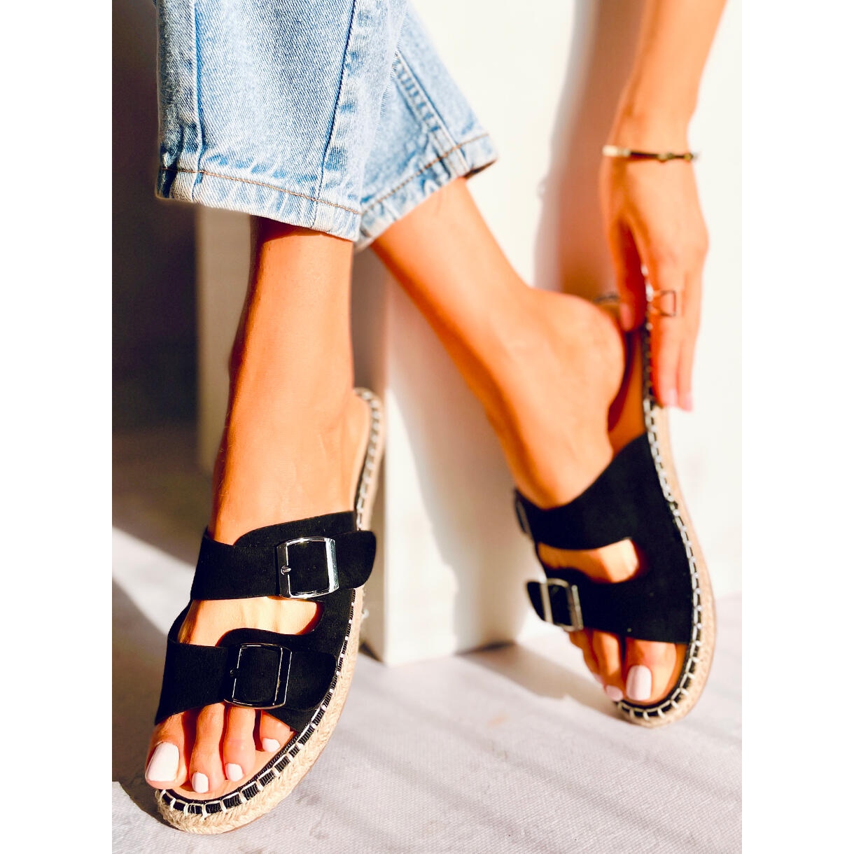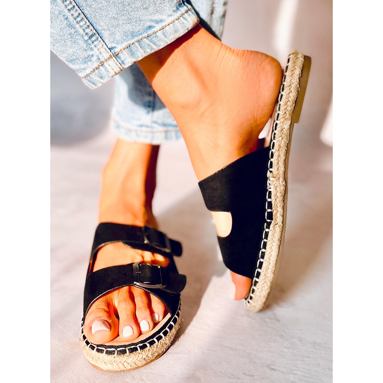Iată opțiunea perfectă pentru zilele de vară - șlapi espadrile Maina Black în negru. Acești șlapi eleganti pentru femei, concepute pentru utilizarea de zi cu zi, sunt o combinație de confort și stil. Cu talpă plată și finisate cu șnur de in, se potrivesc perfect atmosferei casual, de vară.