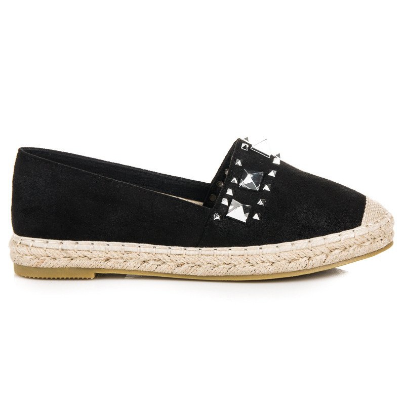 Culoarea neagră universală face espadrilele ușor de combinat cu o varietate de stiluri - de la blugi, prin rochii, până la fuste. Inserția confortabilă din material textil garantează confort în timpul purtării, astfel încât să vă puteți bucura de fiecare pas.