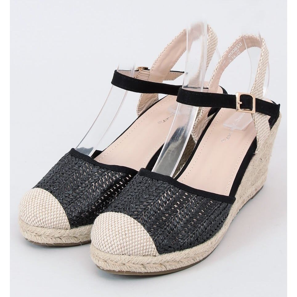 Inna marka Espadrile negre pe toc cu pană DZ8006 Negru bej
