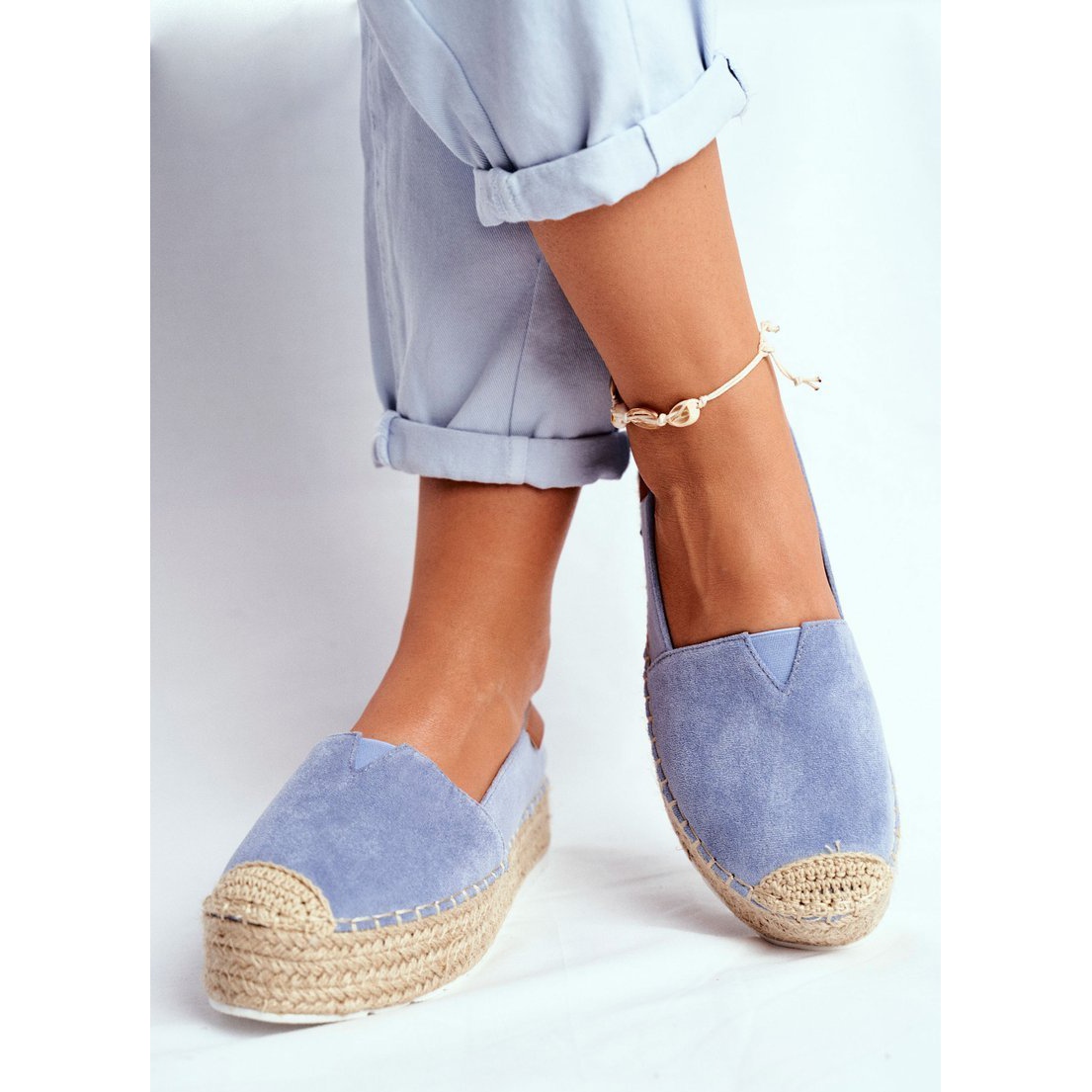O talpă groasă, sintetică, decorată cu un șnur de in este o garanție a stilului și eleganței. Datorită benzii elastice cusute deasupra degetelor de la picioare, pantofii se potrivesc perfect piciorului, ceea ce îi face perfecti pentru orice ocazie. Răsfățați-vă cu puțină ușurință și confort cu espadrilele care se vor potrivi atât stilurilor de zi cu zi, cât și mai casual.