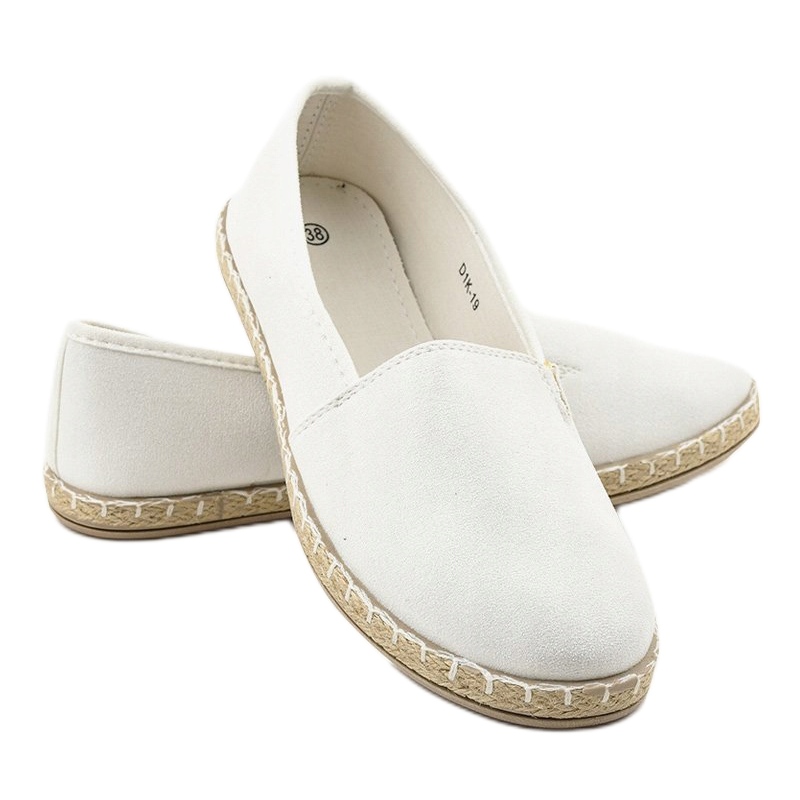 Espadrilele argintii D1K-19 sunt alegerea perfecta pentru fashioniste care vor sa iasa in evidenta printr-un stil original. Datorită lor, vei crea un look la modă pentru zilele de vară, iar culoarea lor universală le va face să se potrivească cu multe combinații. Lasă aceste espadrile elegante să devină un plus perfect pentru garderoba ta!