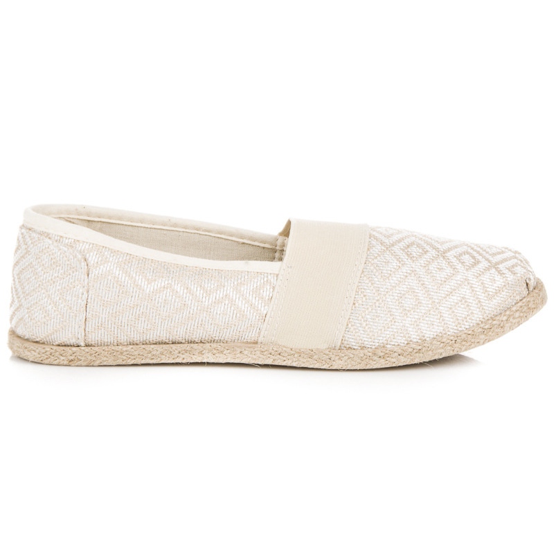 În ciuda lipsei unor decorațiuni suplimentare, espadrilele bej cu model au un stil subtil, atemporal, care se potrivește perfect atmosferei de vară. Lipsa unui model dominant este punctul lor forte, deoarece permite versatilitate în asortarea la o varietate de haine.