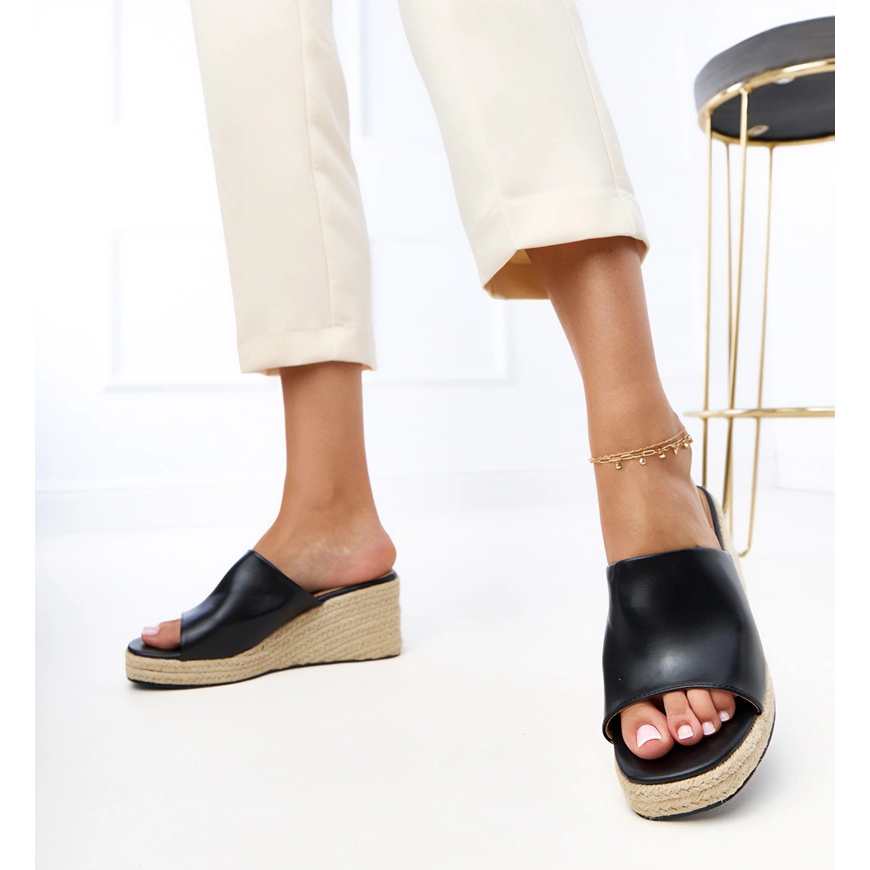 Detalii: Espadrilles negre flip -flops pe pană felicitatea bej