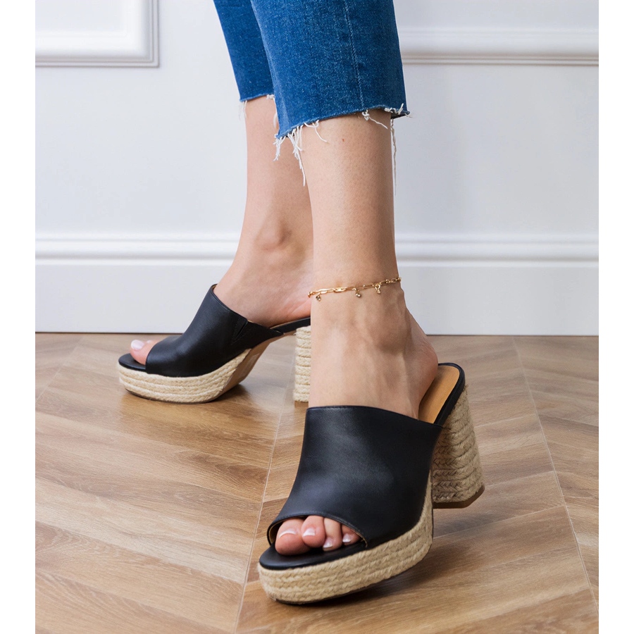 Culoarea lor neagră clasică înseamnă că se potrivesc perfect cu multe stiluri - de la combinații zilnice casual până la un aspect elegant de seară. Datorită înălțimii călcâiului de 10 cm, aceste flip -flops prelungesc optic picioarele, adăugând încredere.