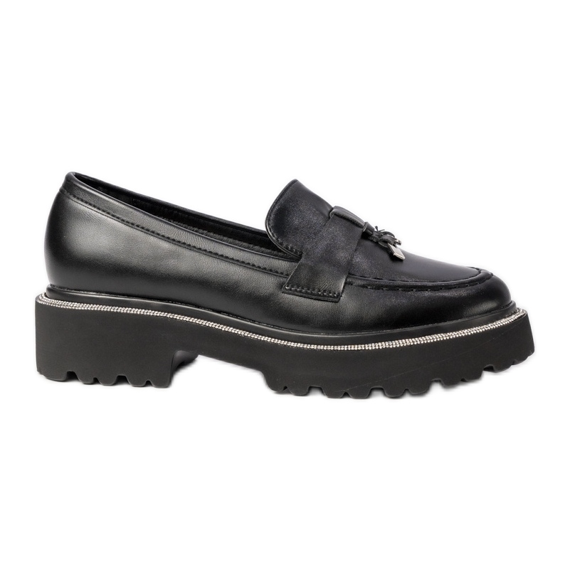 Ceea ce face ca aceste mochete să iasă în evidență este o decorare frumoasă și rineze elegante care le oferă un personaj de lux. Datorită modelului neted și a culorii negre universale, acestea se îmbină bine cu ambele ținute casual, cum ar fi blugi și un tricou, cât și de la stilizări mai formale cu o geacă.