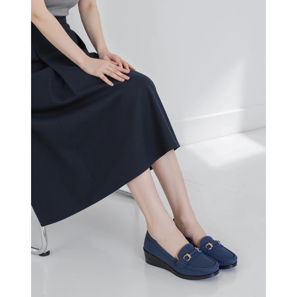 Designul clasic, cu un decor delicat, auriu din față, le oferă un stil unic, ceea ce le face alegerea perfectă pentru diverse ocazii. Datorită pană ridicată, Mirena Blue Loafers asigură stabilitate și confort, permițându -vă să vă purtați cu ușurință pe parcursul zilei, indiferent dacă veți lucra, întâlniți prieteni sau pentru o plimbare în weekend.