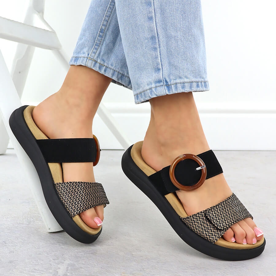 Papucii sunt într -o culoare neagră clasică, ceea ce le face un plus universal la multe stilizări de vară. Reducerea lor casual le face ideale atât pentru rezultatele zilnice, cât și pentru întâlniri mai slabe cu prietenii. Calea alunecată și velcro reglabilă vă permit să vă încadrați și să vă puneți ușor în mod convenabil, ceea ce este deosebit de important în zilele călduroase.