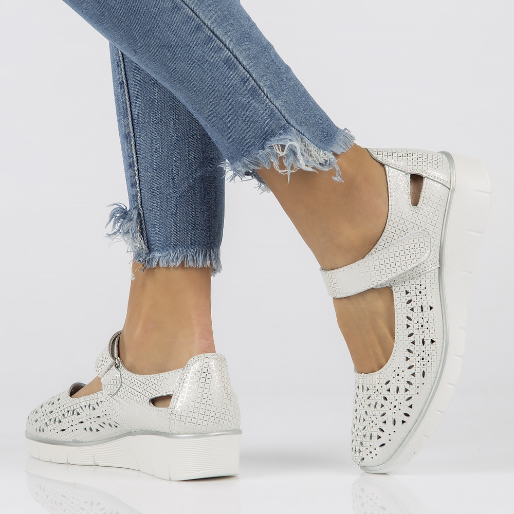 Închiderea cu velcro face pantofii ușor de pus și scos, făcându-i o alegere practică pentru utilizarea de zi cu zi. Interiorul din piele naturala asigura confort si circulatie adecvata a aerului, lucru deosebit de important atunci cand este purtat o perioada indelungata. De asemenea, oferă o talpă confortabilă din plastic de 1,5 cm înălțime, ceea ce le face perfecte pentru plimbări lungi.