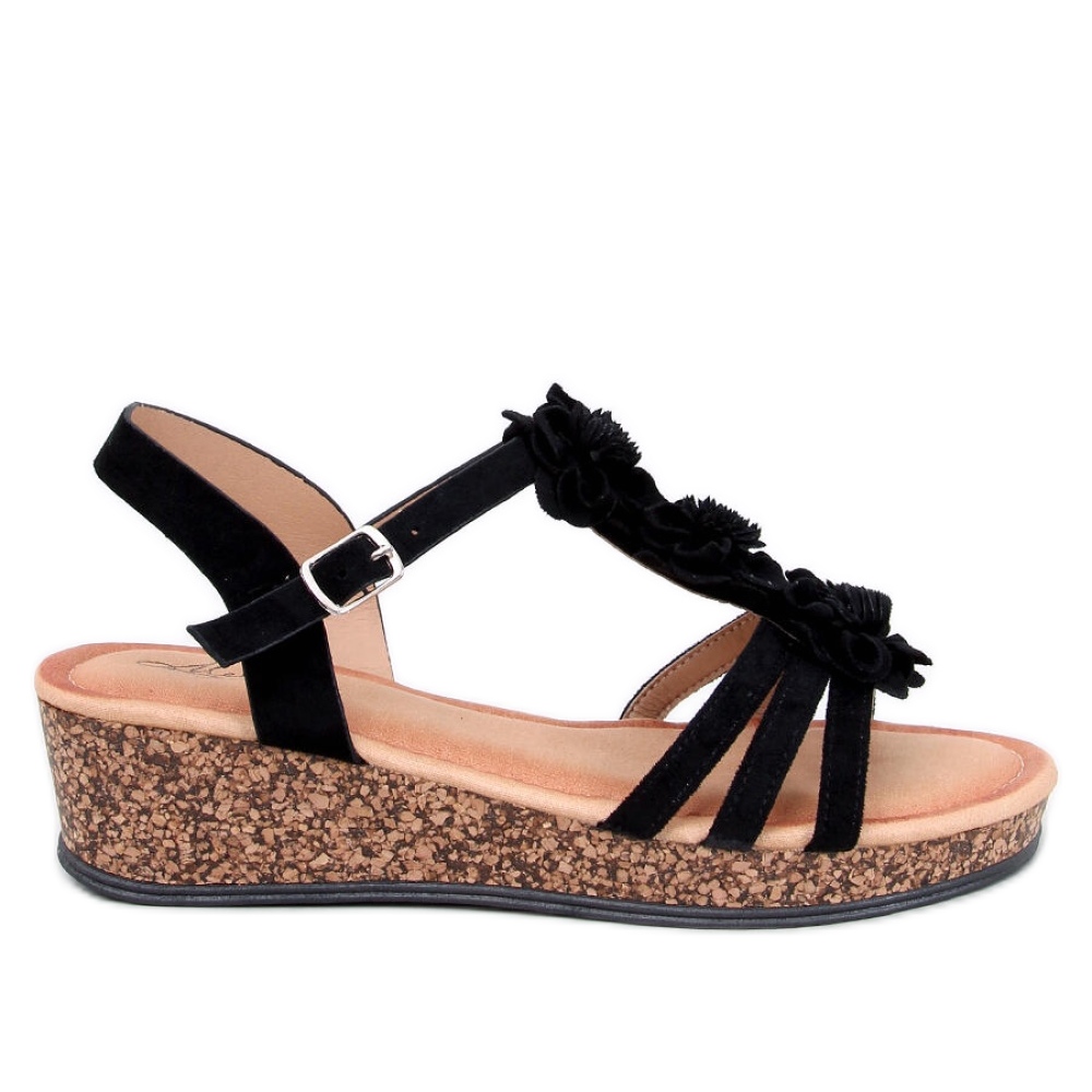 Inello Fisken Sandale cu pană cu flori negre - Inello negru