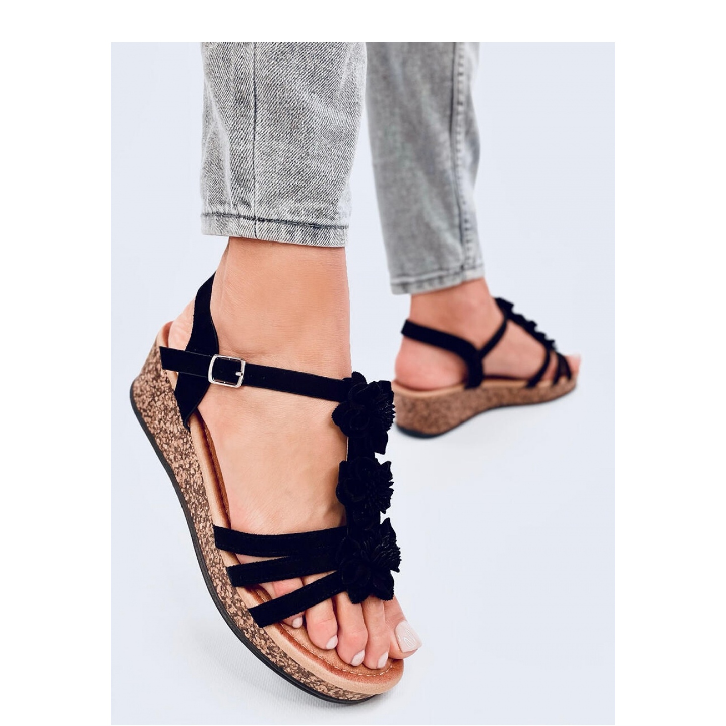 Vă prezentăm sandale pe o pană cu flori negre Fisken de la INELLO - complementul perfect pentru garderoba de vară! Aceste sandale elegante pentru femei se disting printr -un design neobișnuit, care combină cele mai recente tendințe și confortul purtării.