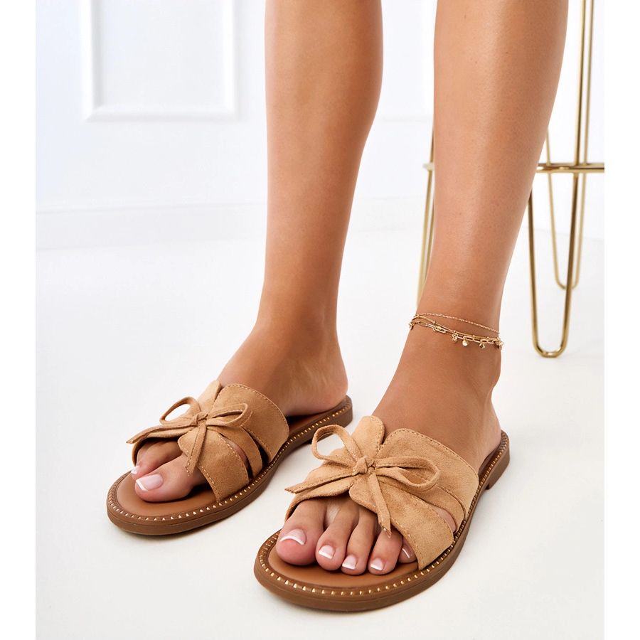Inna marka Flip Brown -flops cu arc și decorare la margini maro