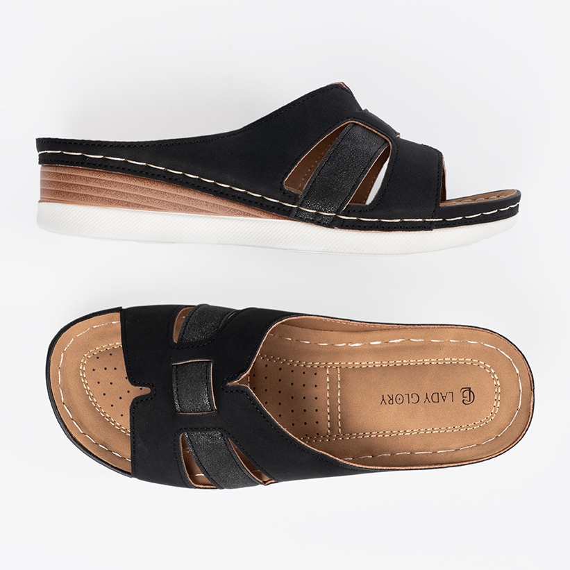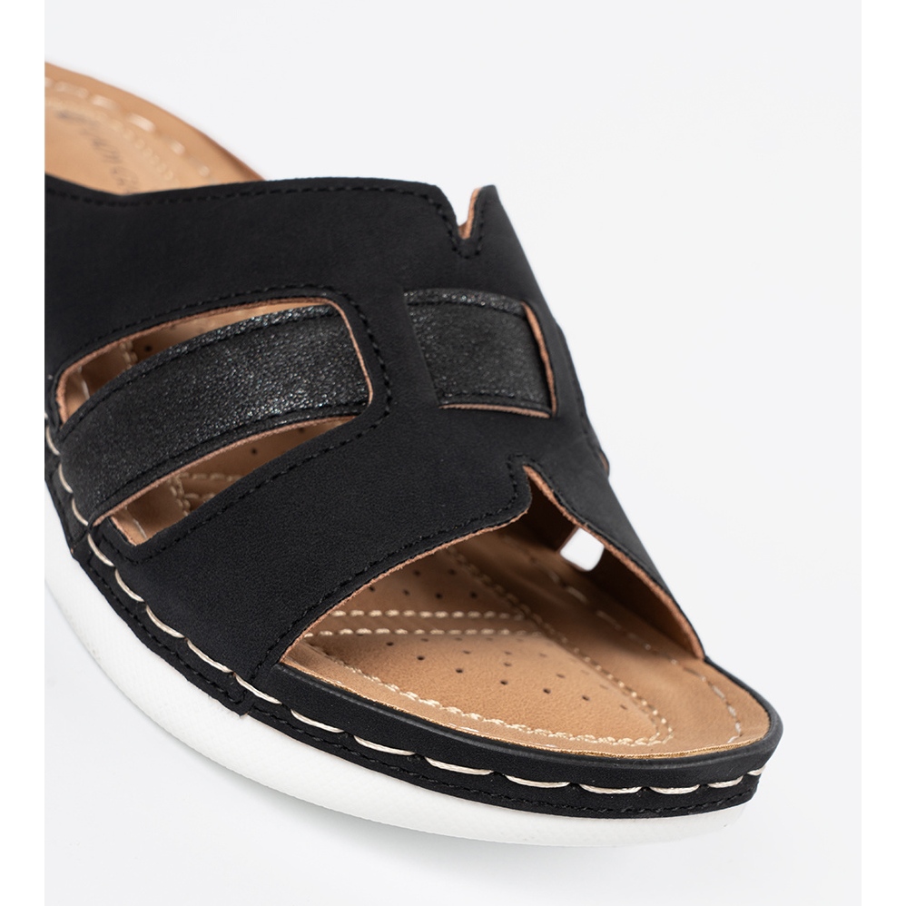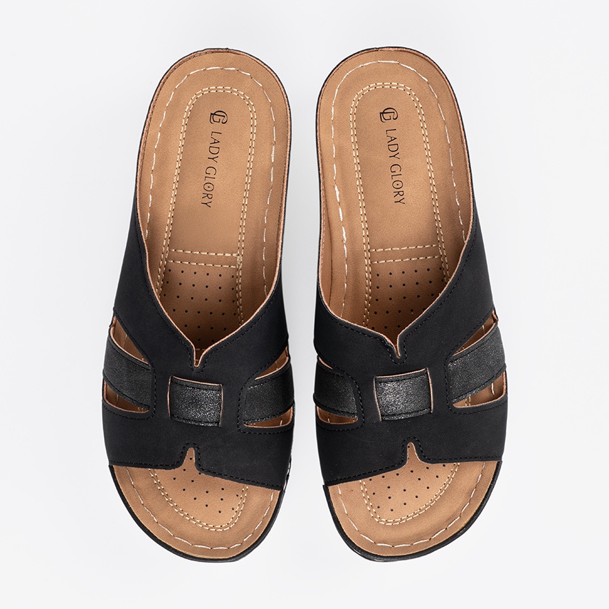 Prezentăm papuci elegante pentru femei într -o culoare neagră clasică, care va fi complementul perfect pentru fiecare stilizare zilnică. Aceste flip -flops combină designul la modă cu purtarea confortului, ceea ce le face o alegere perfectă pentru zilele de vară.