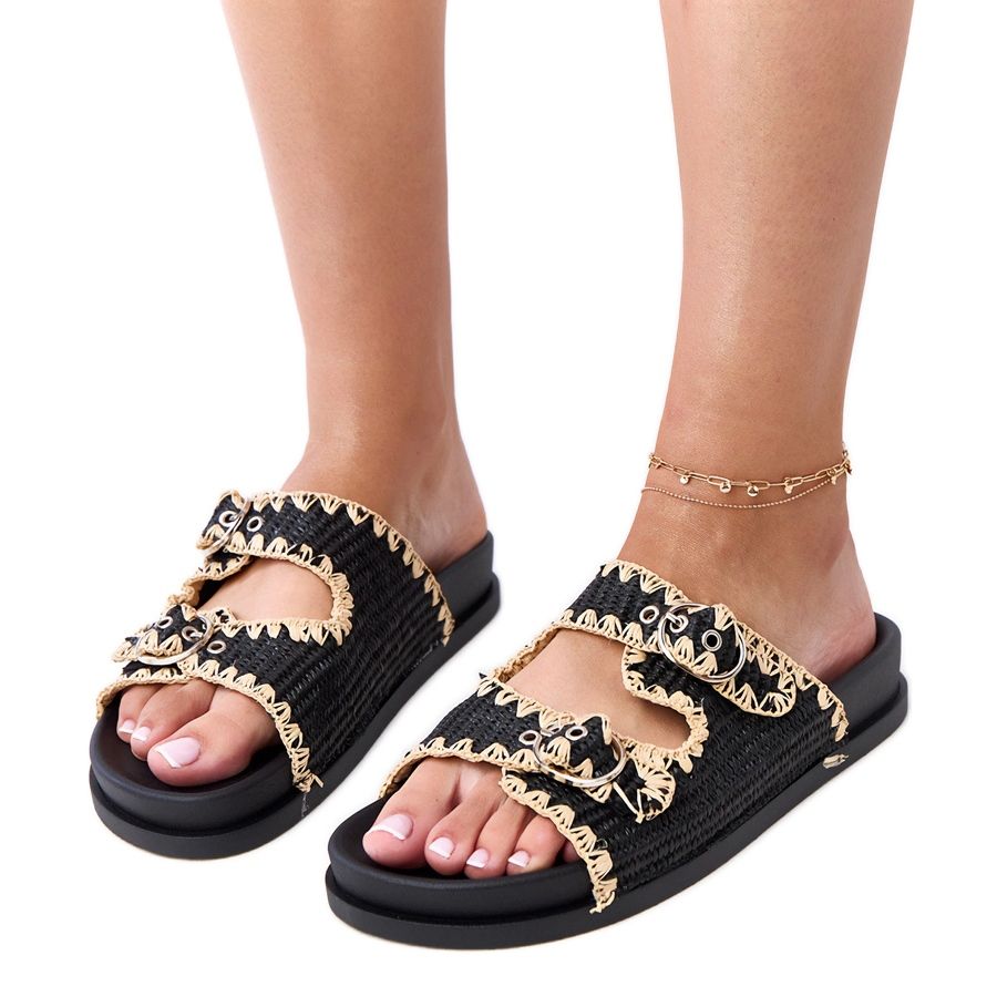 Descoperiți confortul și stilul în vară datorită clapelor țesute cu catarame de sameli. Aceste elegante flip -flop -uri negre sunt o alegere excelentă pentru femeile moderne care apreciază casual, dar în același timp aspectul la modă.
