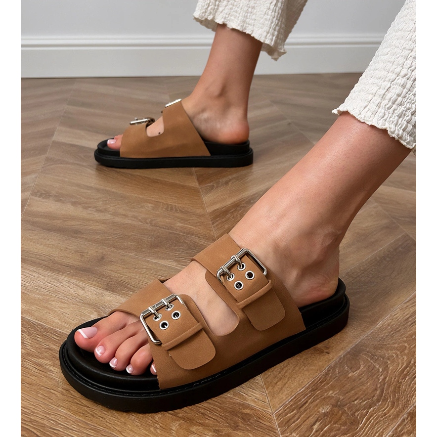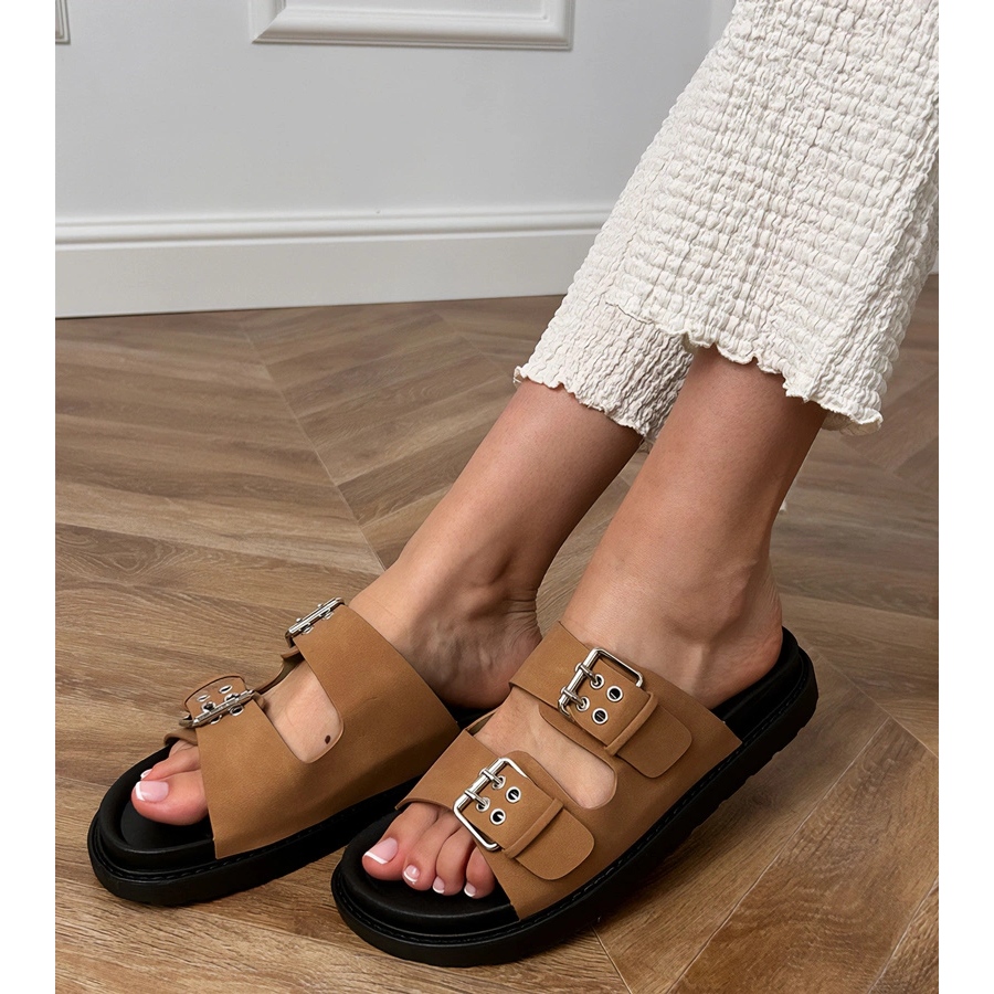 Flip -flop -urile maro cu dungi sunt o alegere excelentă pentru fiecare femeie la modă care apreciază confortul și stilul. Aceste flipuri elegante, confecționate din piele de cămilă ecologică de înaltă calitate, se îmbină perfect cu stilizări casual, subliniind fiecare ținută.
