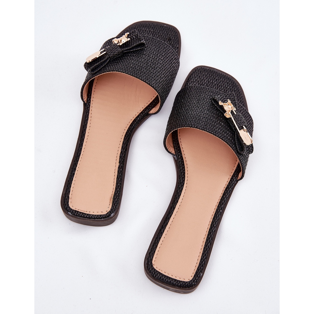 Vă prezentăm tocuri plate pentru femei cu un arc într -o culoare neagră elegantă care combină confortul și un stil unic. Aceste flip -flop -uri frumoase se disting printr -un arc delicat, cu o broșă decorativă, ceea ce le face un plus ideal pentru multe stilizări de zi cu zi.