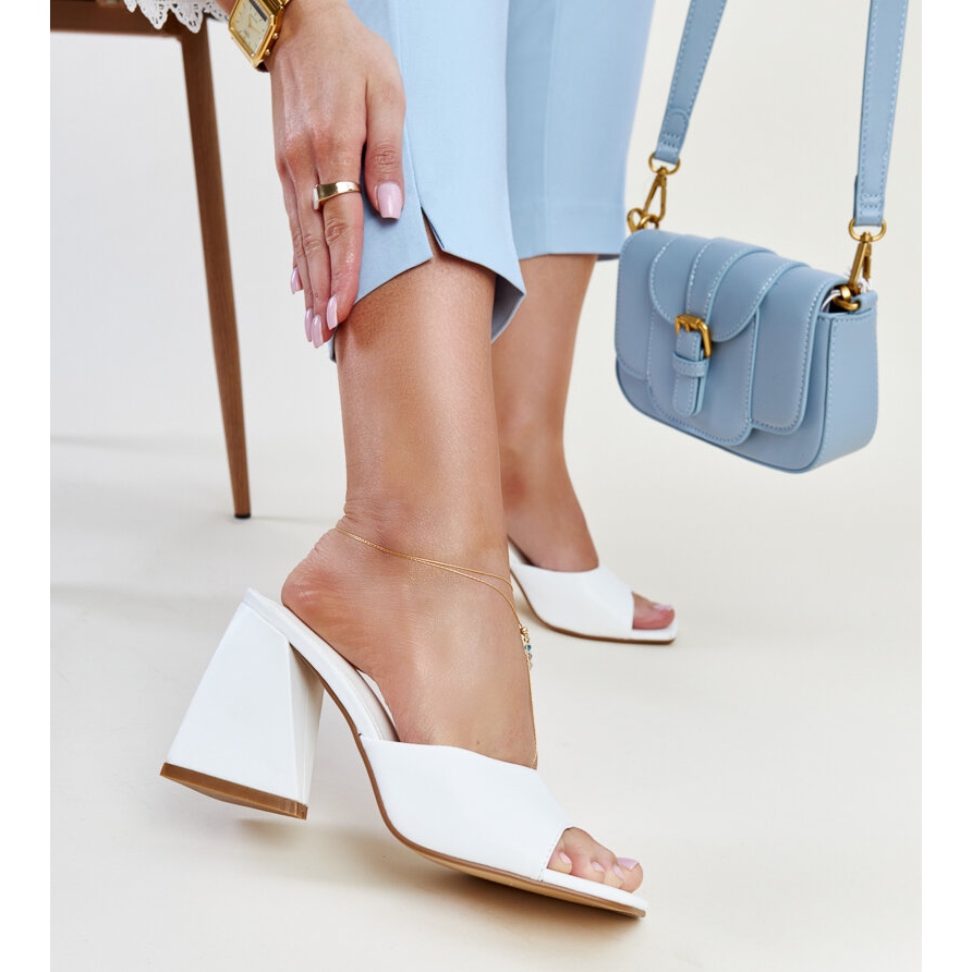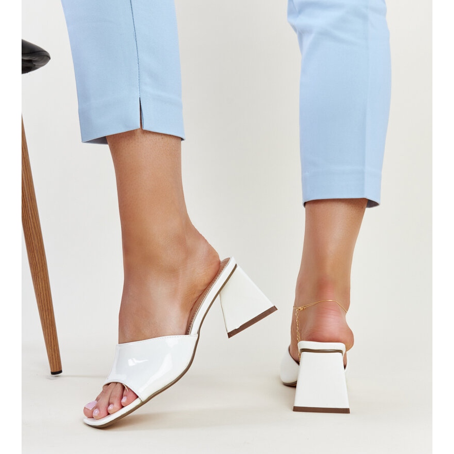Descoperiți eleganța verii cu mulașii cu toc Andela alb lacuit, care sunt combinația perfectă de stil și confort. Acești șlapi, din piele ecologică lacuită, oferă nu doar un aspect la modă, ci și confort la fiecare pas. Croiala clasică cu toc de 6,5 centimetri adaugă lejeritate subtilă, făcând șlapii perfecti pentru rochii, fuste sau pantaloni scurți de vară.