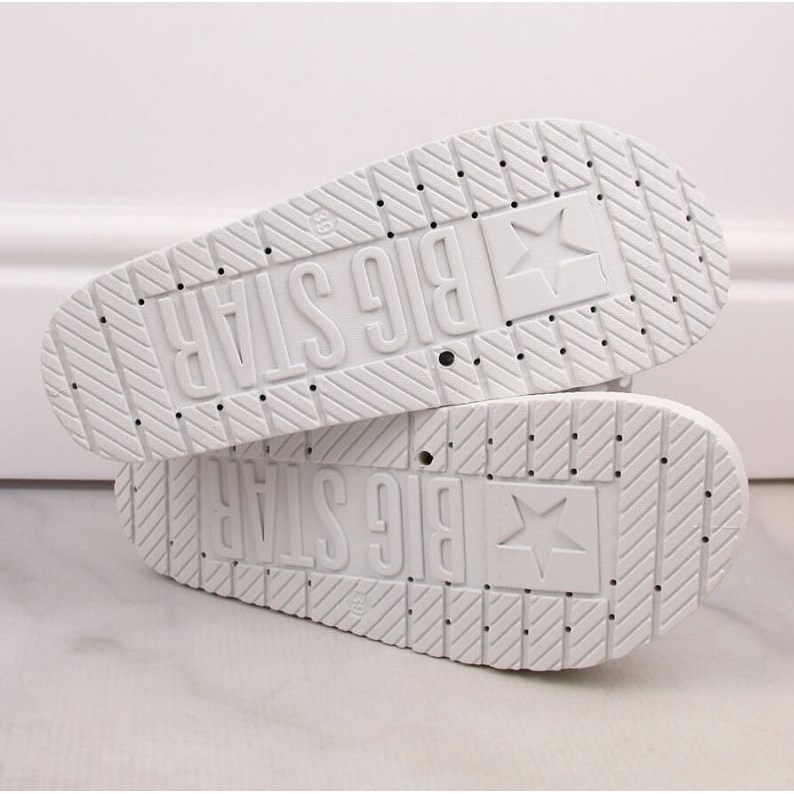 Produsul se adresează femeilor cărora le place un stil casual, dar sofisticat. Colecția actuală Big Star reflectă pe deplin cele mai recente tendințe și, în același timp, asigură confort atunci când este purtată. Partea superioară sintetică garantează durabilitatea încălțămintei și ușurința de curățare. Universalitatea culorii albe face ca acești șlapi să se potrivească perfect cu majoritatea ținutelor de vară, de la rochii de plajă la pantaloni scurți casual și blugi.