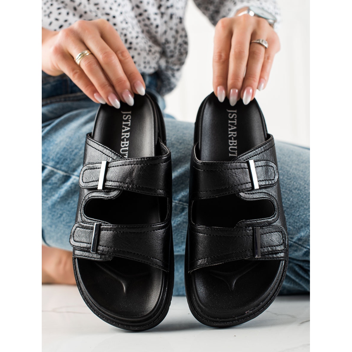 Descoperiți o nouă dimensiune a confortului și stilului cu clapele cu velcro de la J. Star! Acești șlapi casual într-o culoare clasică neagră sunt alegerea perfectă pentru zilele calde de primăvară și vară. Fabricate din piele ecologică de înaltă calitate, nu numai că arată grozav, dar îngrijesc și mediul înconjurător.