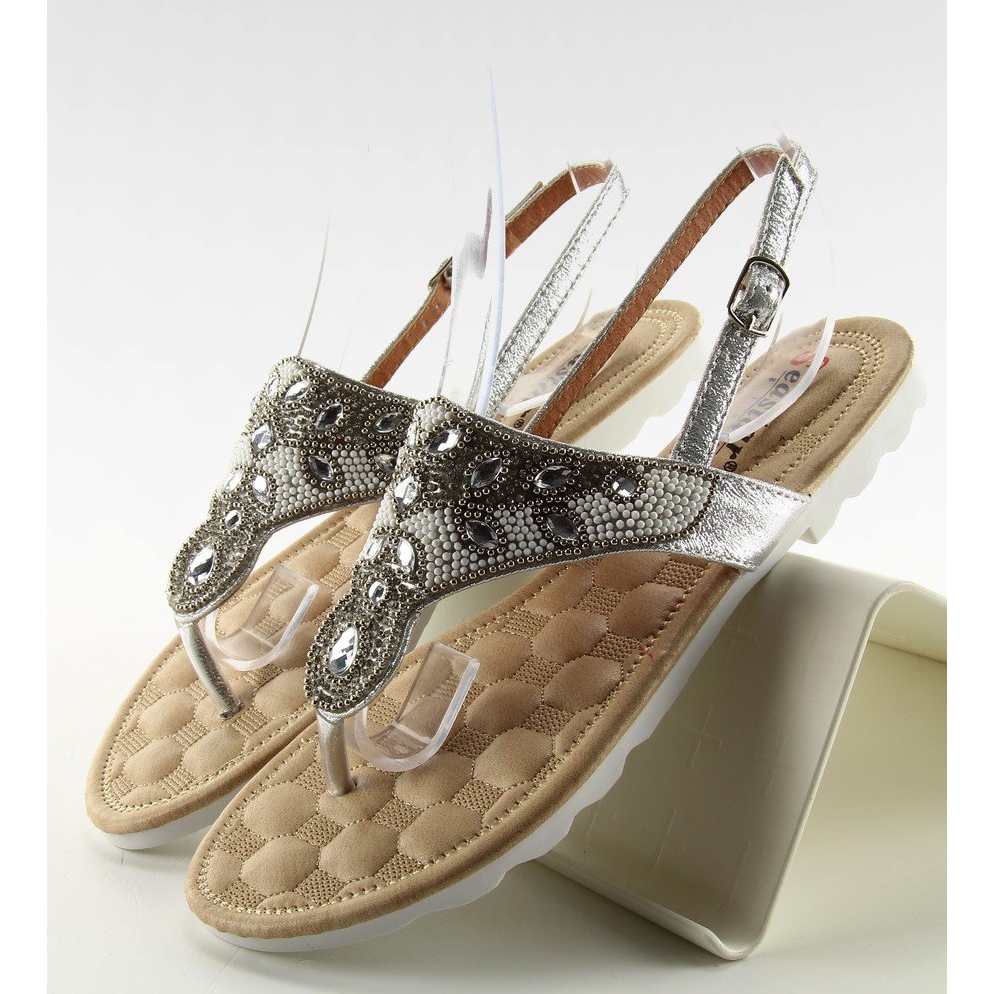 Inna marka Flip-flops cu margele de argint G144 gri