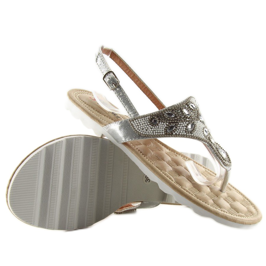 Detalii: Flip-flops cu margele de argint G144 gri