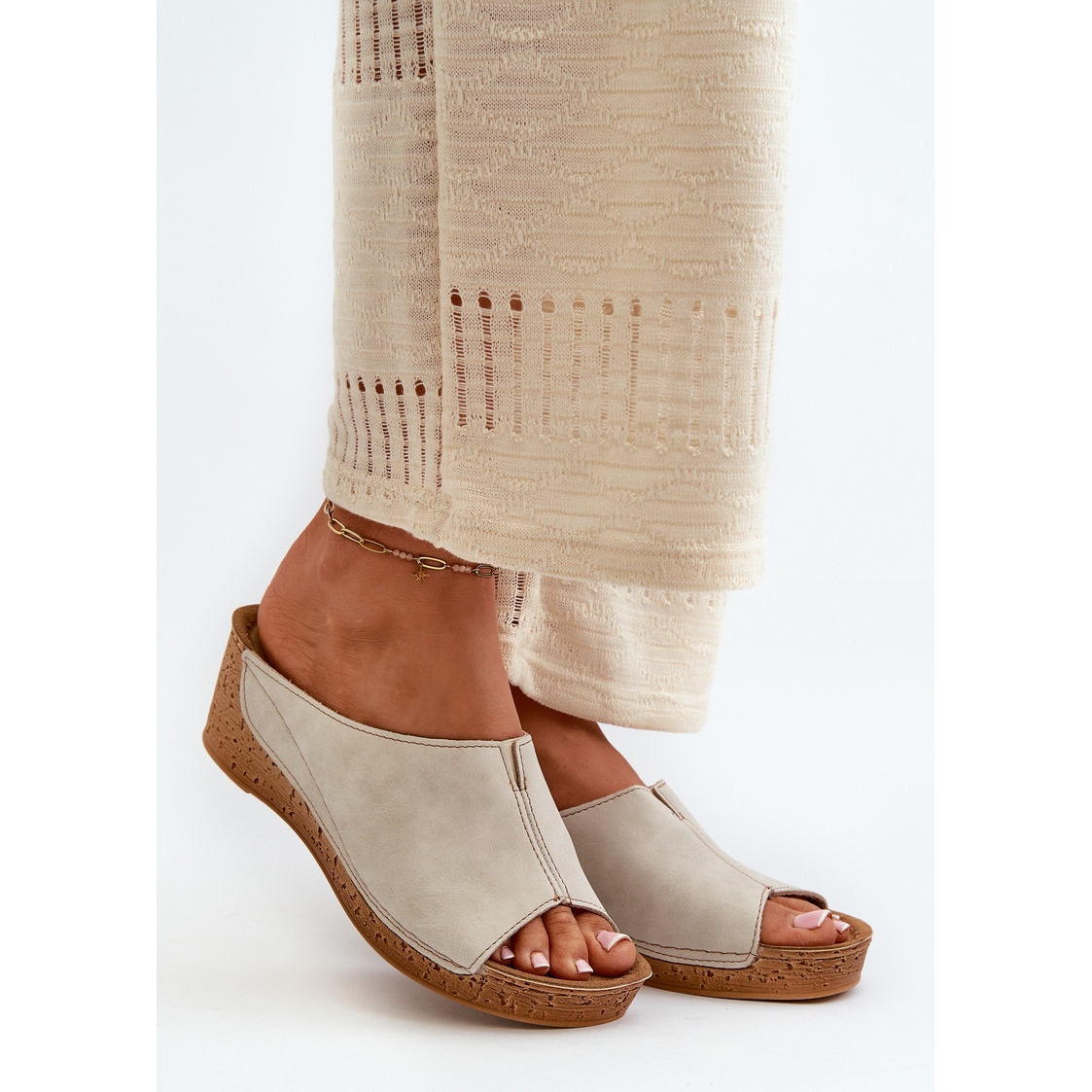 Fabricat din piele ecologică moale, flip -flops nu garantează doar confortul purtat, dar, de asemenea, se îmbină perfect cu diverse stilizări. Setat pe o pană stabilă, care are o înălțime de 6 cm, oferă o înălțime și sprijin optim pentru picior, ceea ce le face alegerea perfectă zilnic. Inserția profilată din piele naturală din piele de căprioară se adaptează perfect la forma anatomică a piciorului, care promovează confortul pe termen lung.