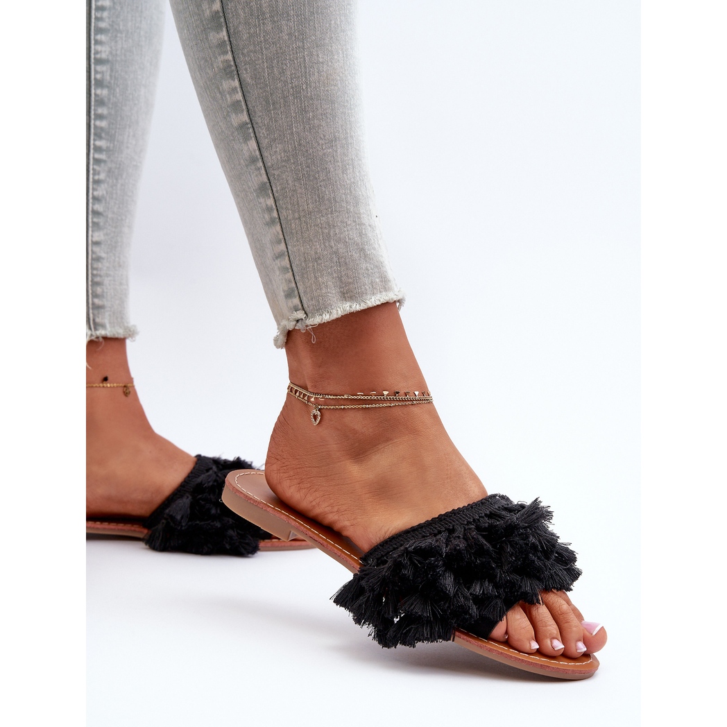 Detalii: Flip Flops Damă Plati Cu Franjuri, Rialle Negru