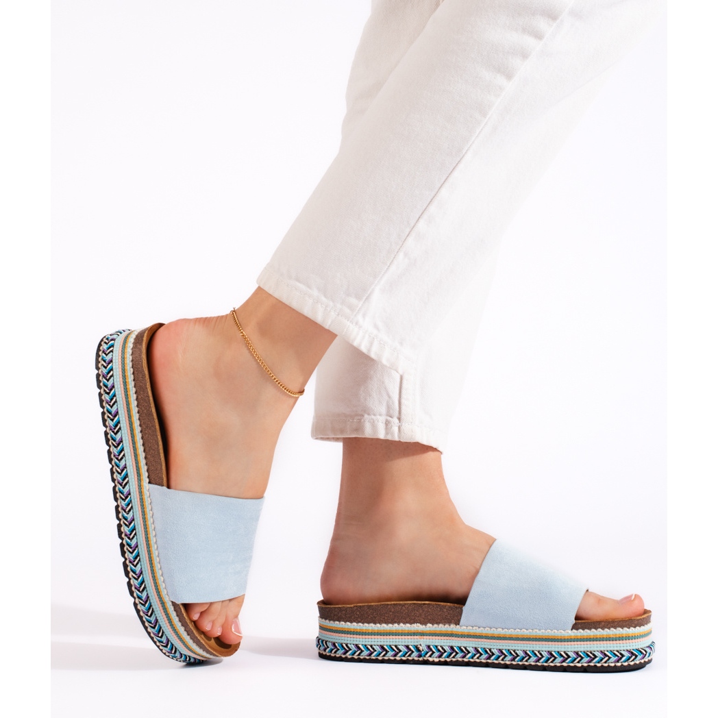 Descoperă eleganța și confortul în șlapii de damă albaștri cu platformă de la marca Inna! Perfecte pentru purtarea de zi cu zi, aceste tobogane sunt combinația perfectă de stil și confort. Realizate din imitație de piele de căprioară de înaltă calitate, acestea vor fi o completare perfectă pentru orice stil de vară.