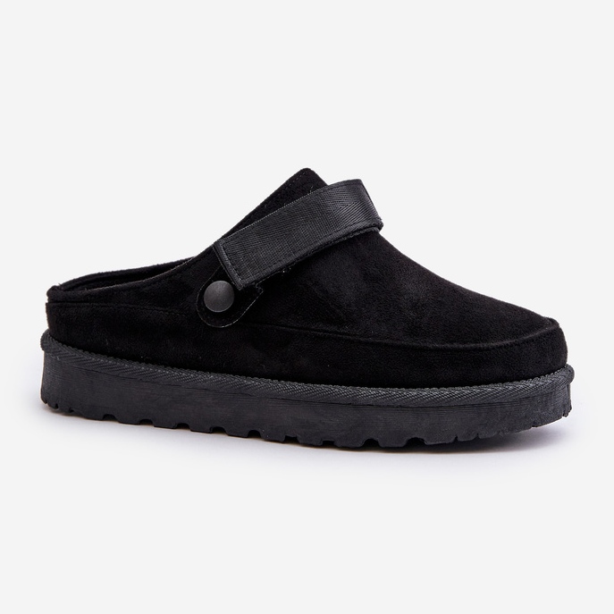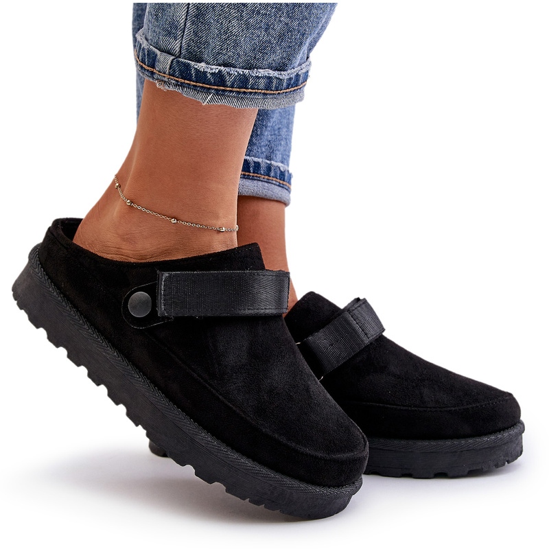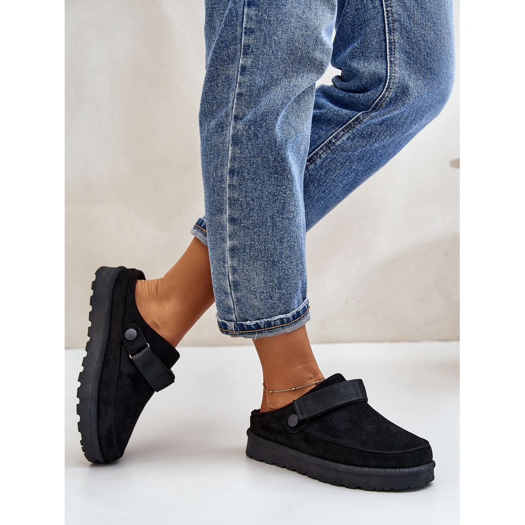 Interiorul șlapii este finisat cu blană extrem de moale, care asigură căldură și plăcerea de a purta chiar și în zilele mai reci. Asezati pe o platforma inalta de 4 cm, acestea adauga un pic de inaltime asigurand in acelasi timp stabilitate si confort. Cureaua mobilă prinsă cu Velcro permite o ajustare perfectă la forma piciorului, ceea ce oferă un plus de încredere și confort la purtare.