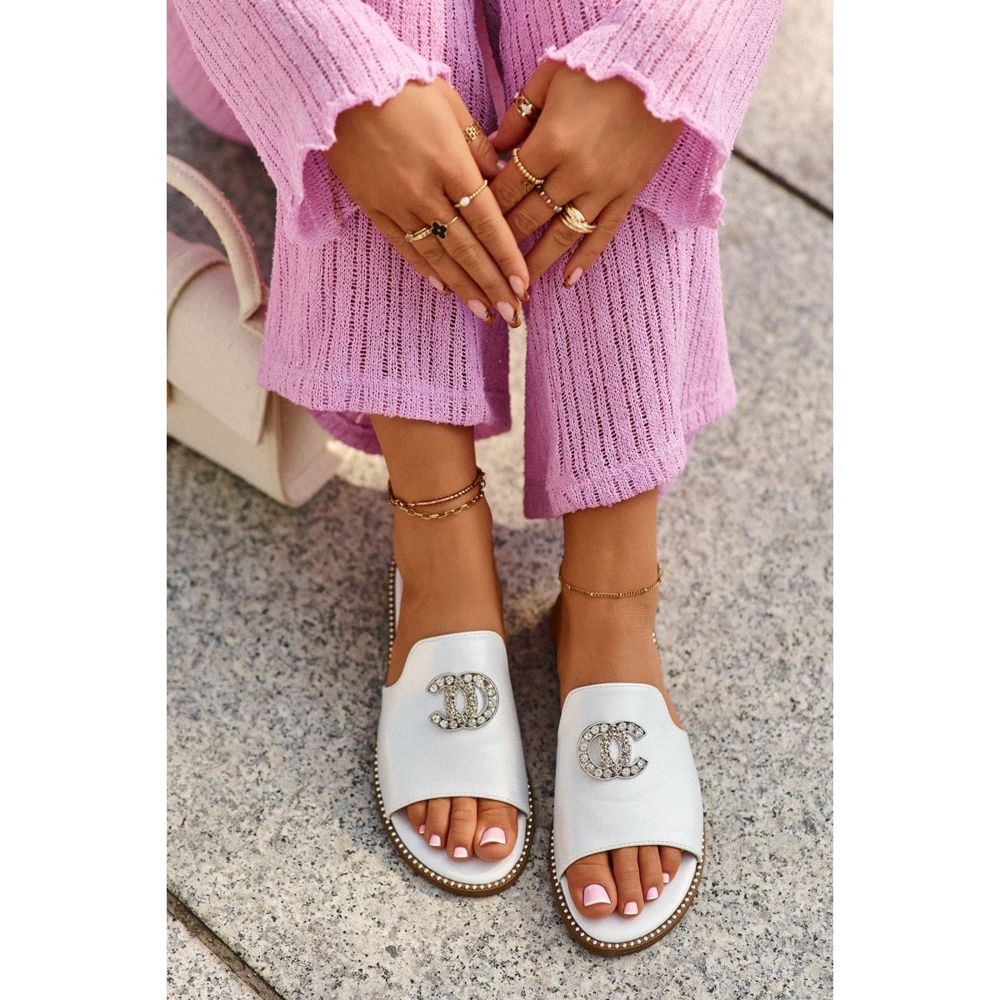 Papuci pentru femei elegante strălucitoare cu un ornament S. Barski KV27-050 în argint este alegerea perfectă pentru femeile care doresc să combine stilul cu confortul. Aceste flip -flops, încorporate în tocuri plate, se disting printr -un finisaj eficient, strălucitor și un decor încântător, care atrage atenția și adaugă eleganță oricărei stilizări.