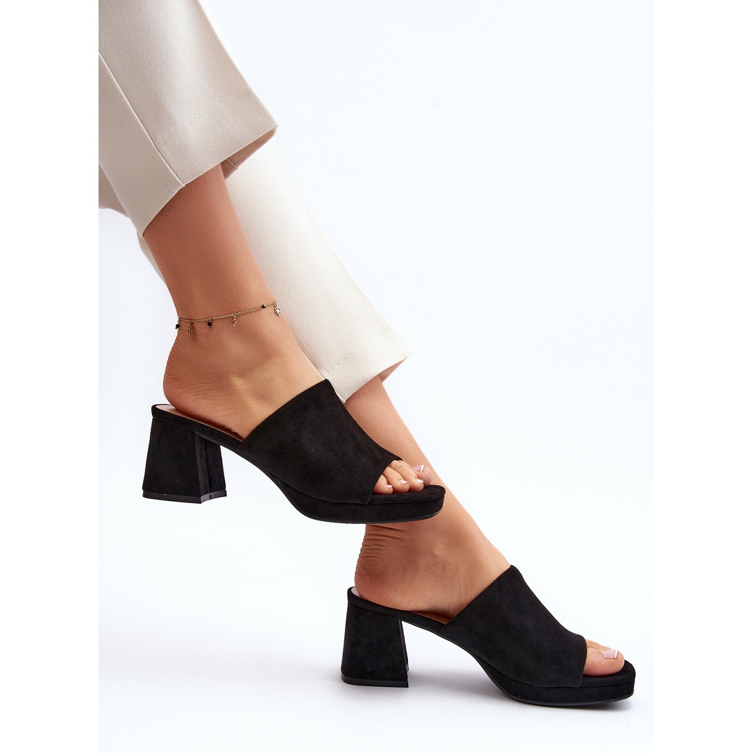 Detalii: Flip-flops de damă, negru, cu toc înalt, Bralya