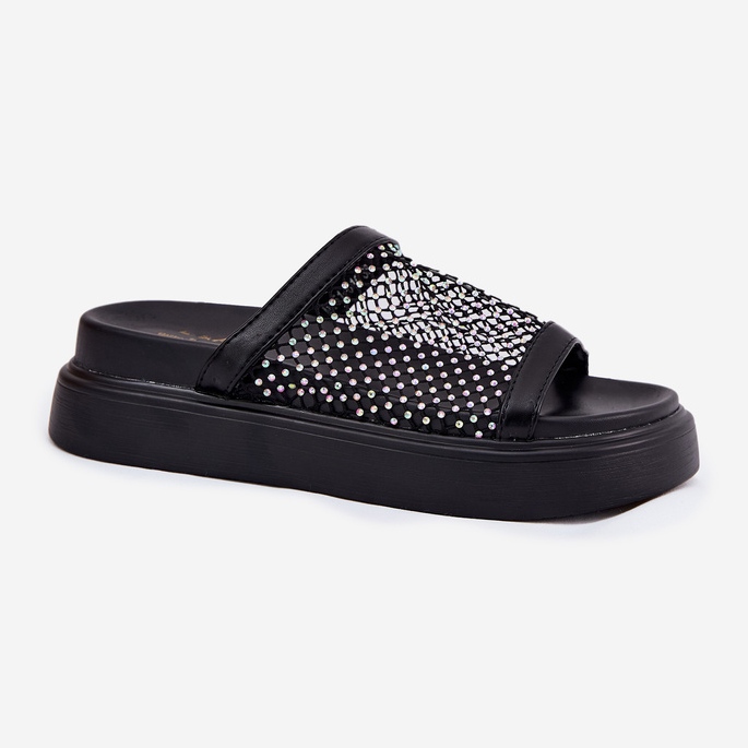 S.Barski S.Barski Flip-flops decorat pentru femei pe platformă cu Mesh S. Barski My51-016 Negru