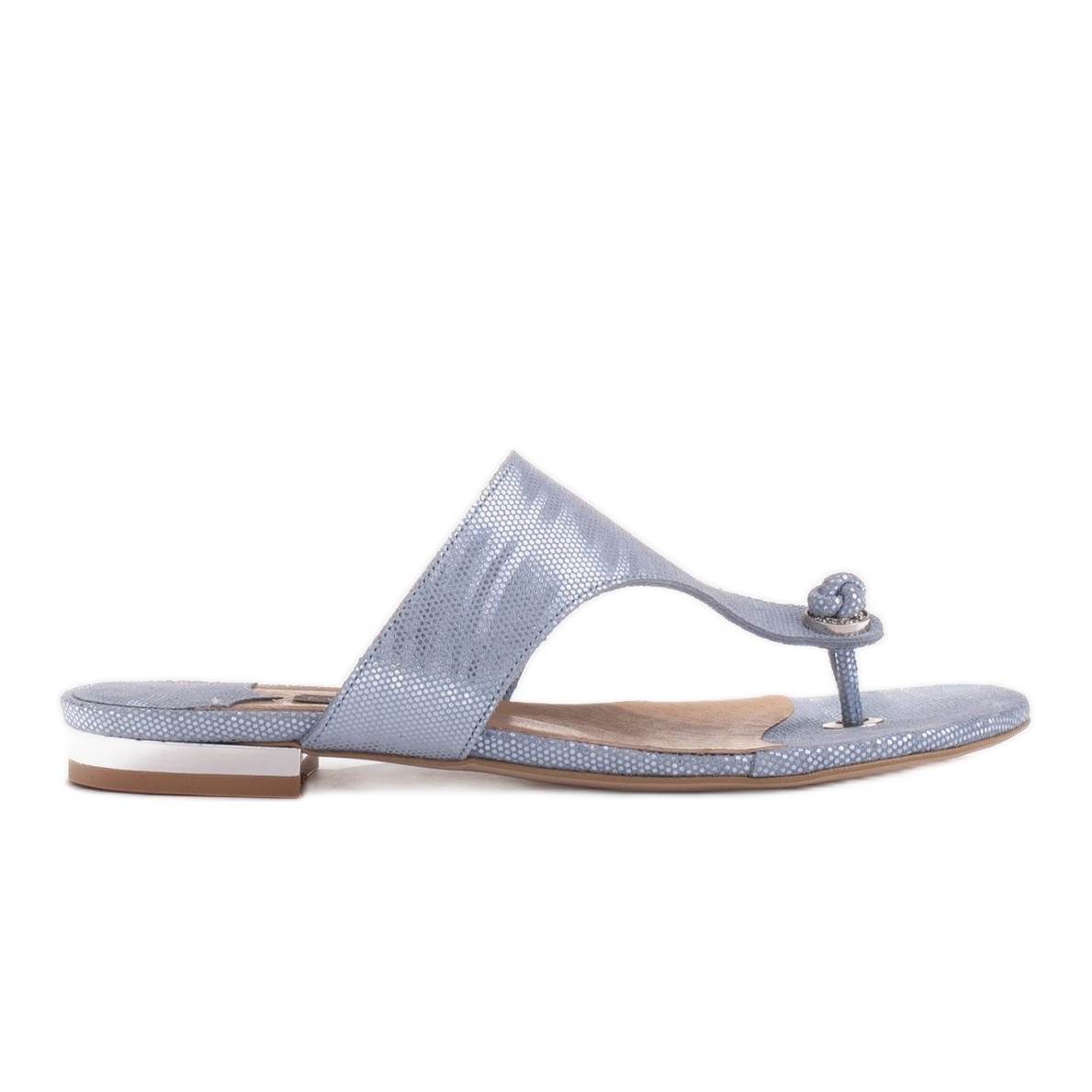 Marco Shoes Marco Shoes Flip-flops din piele cu toc metalic albastru