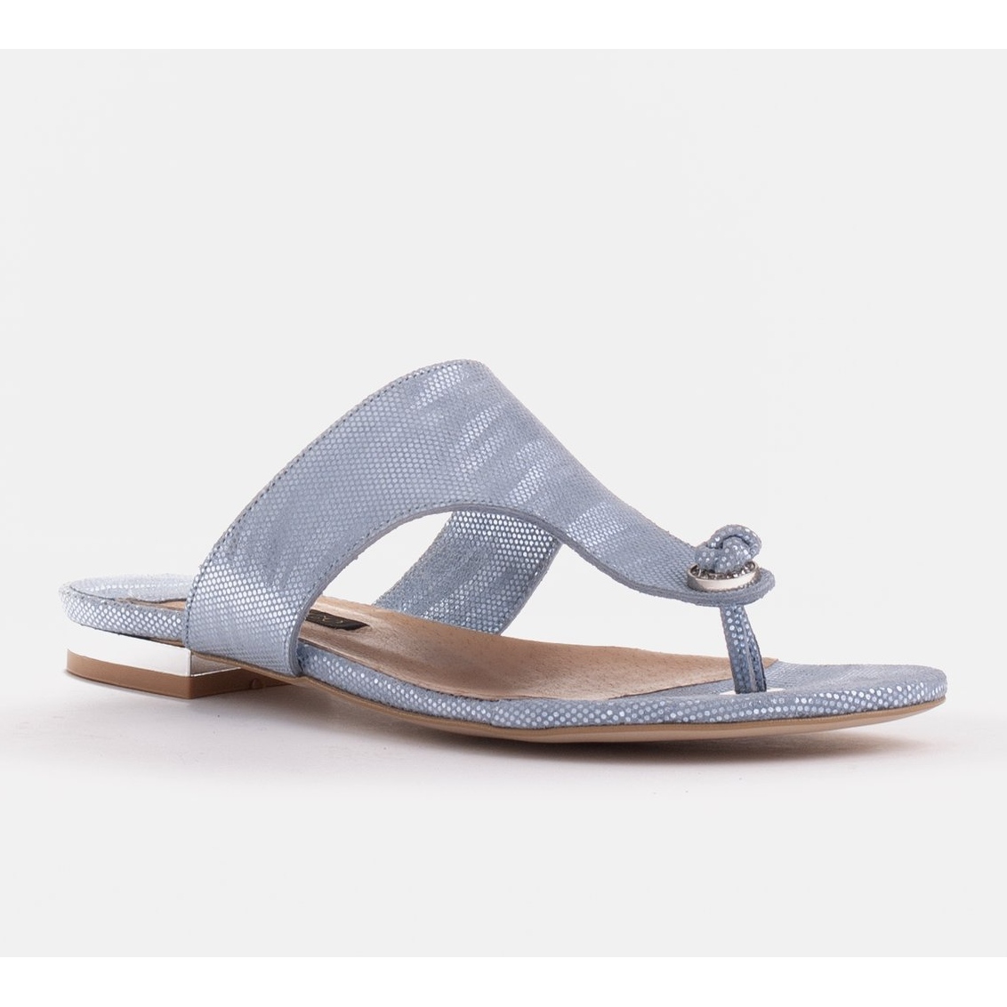 Detalii: Marco Shoes Flip-flops din piele cu toc metalic albastru