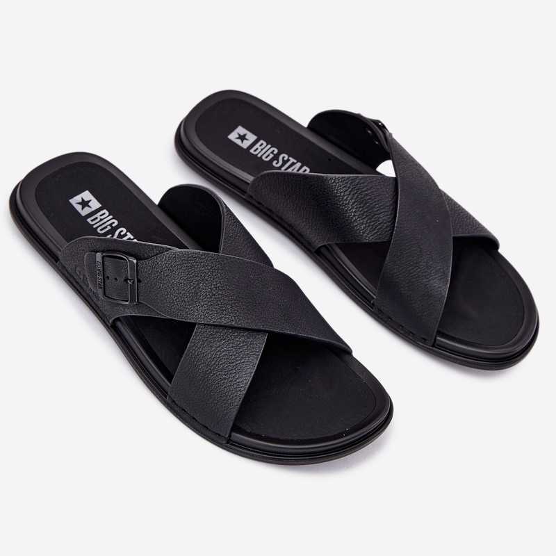 Big Star Big Star Flip -flops din piele masculină cu o stea mare RR174076 BRAMLE NEGRU