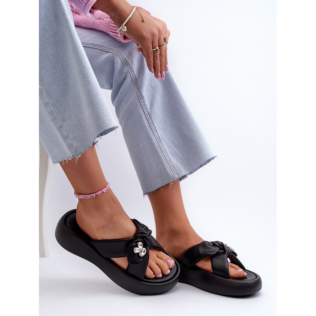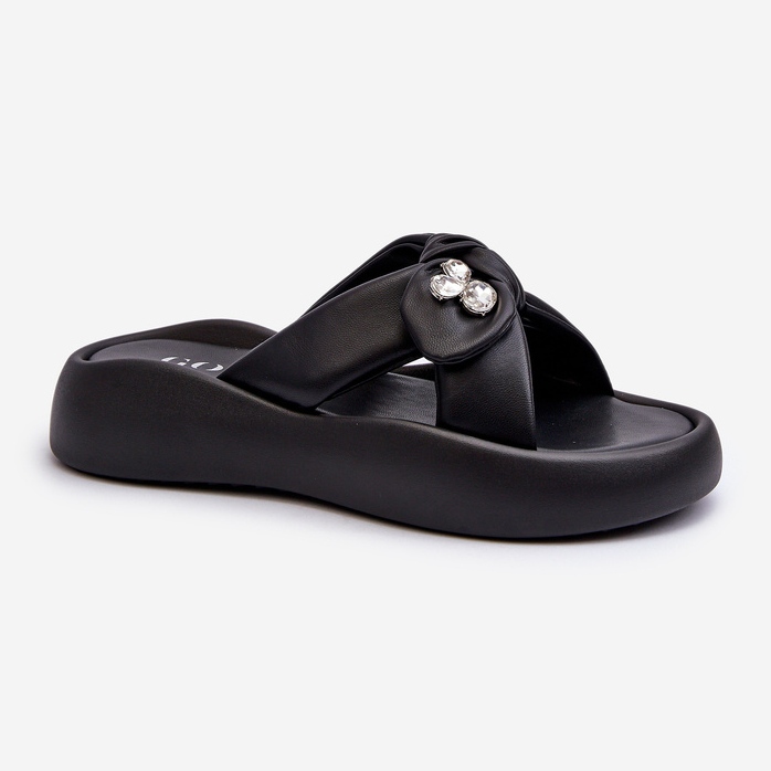 Detalii: Flip-flops din piele pentru femei pe platformă neagră GOE NN2N4110 negru